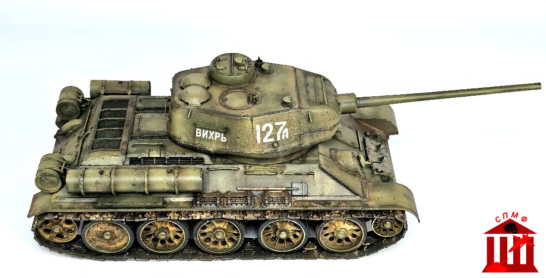 Доброго времени. Долго эта модель ждала своего часа. Хотел сделать к 80 летию Победы, но сделал к 80 летию Парада Победы, что впрочем тоже символично. По модели. Делал без привязки. Заменил гусеницы,пулемёт, гудок и сетки на металл. Разнообразил ходовую смоляными и донорскими катками. Перекроил сварные швы на башне, добавил следы газореза по подсказке товарища. Приятного просмотра.