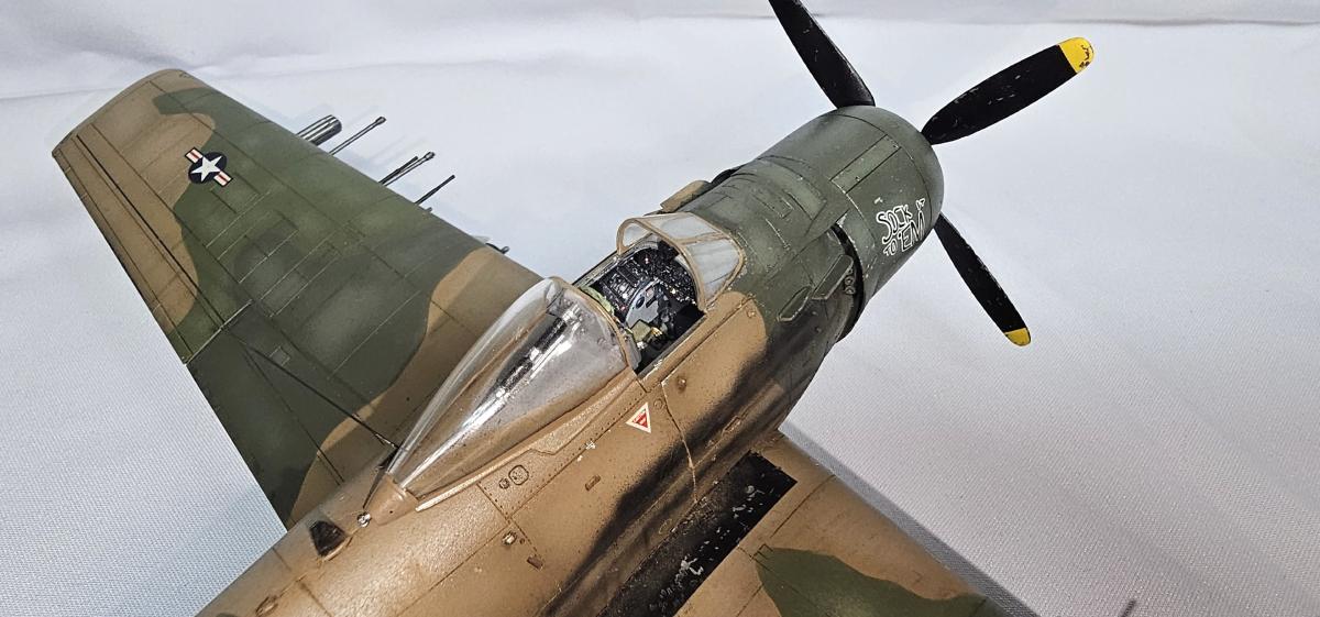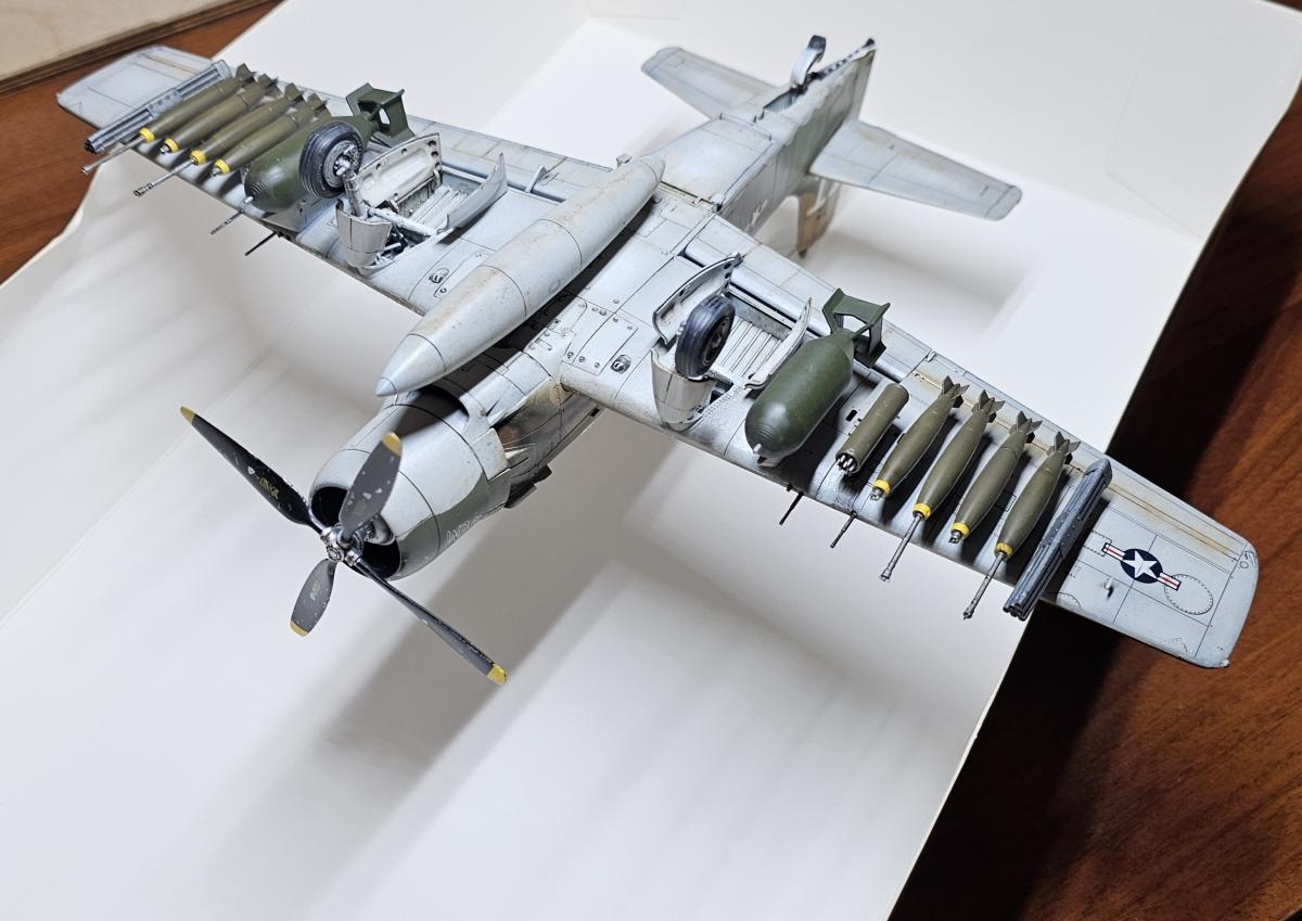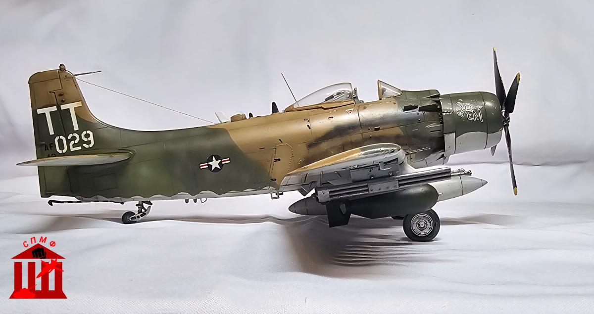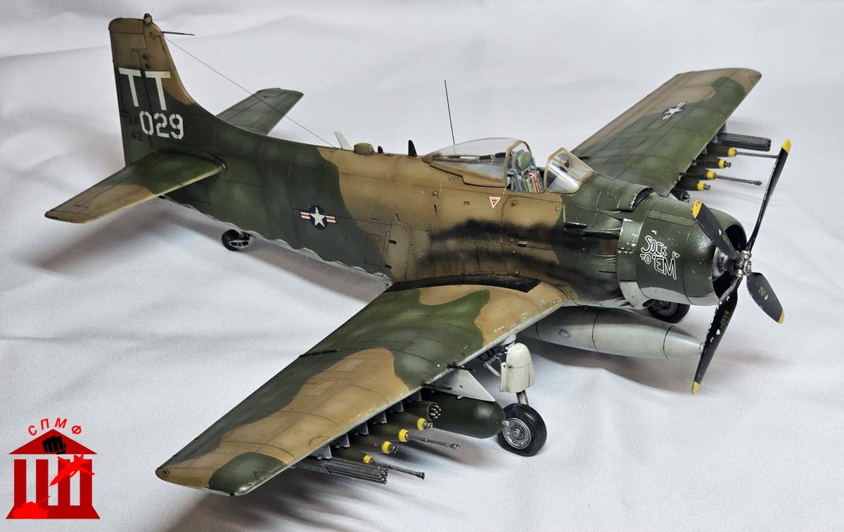 Доброго времени. Фронтовой вариант штурмовика "Skyraider". Приятный в сборке набор, из дополнений: декаль кабины от Quinta, стволы и трубка Пито от Master, а также смоляные колёса под нагрузкой. P.S. Во время работы над моделью ушёл из жизни Сюнсаку Тамия, поэтому его памяти посвящается.