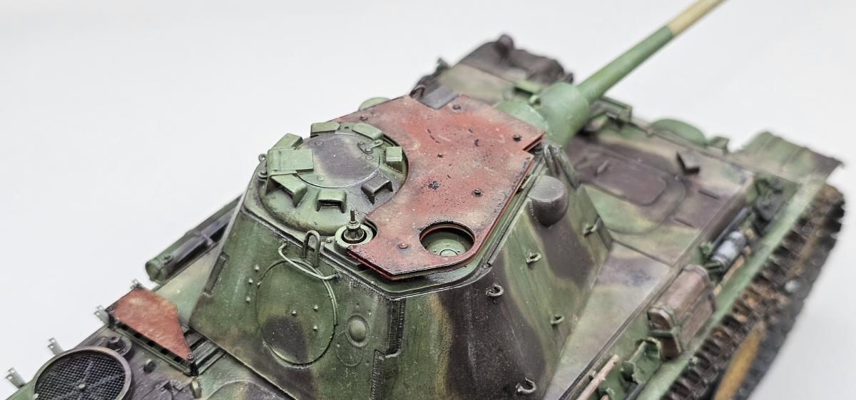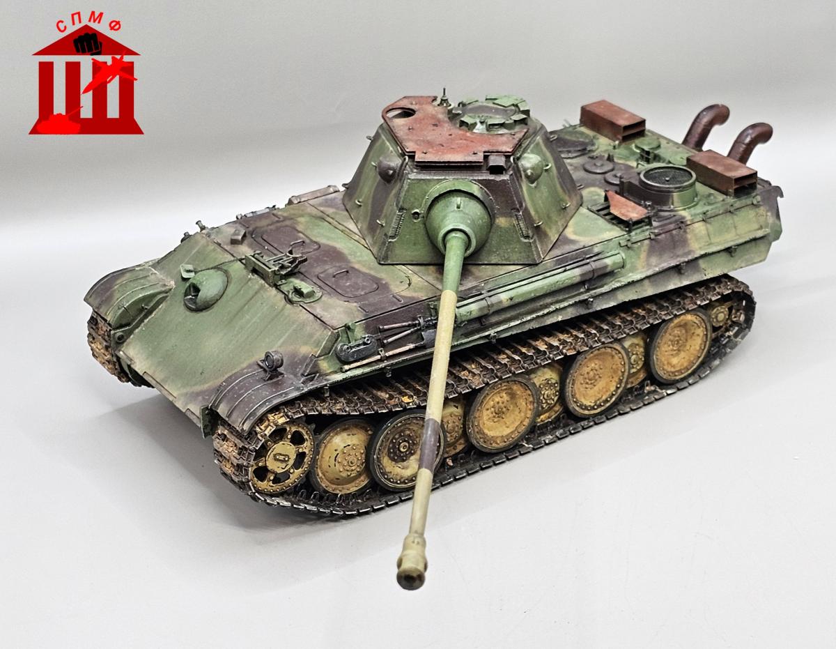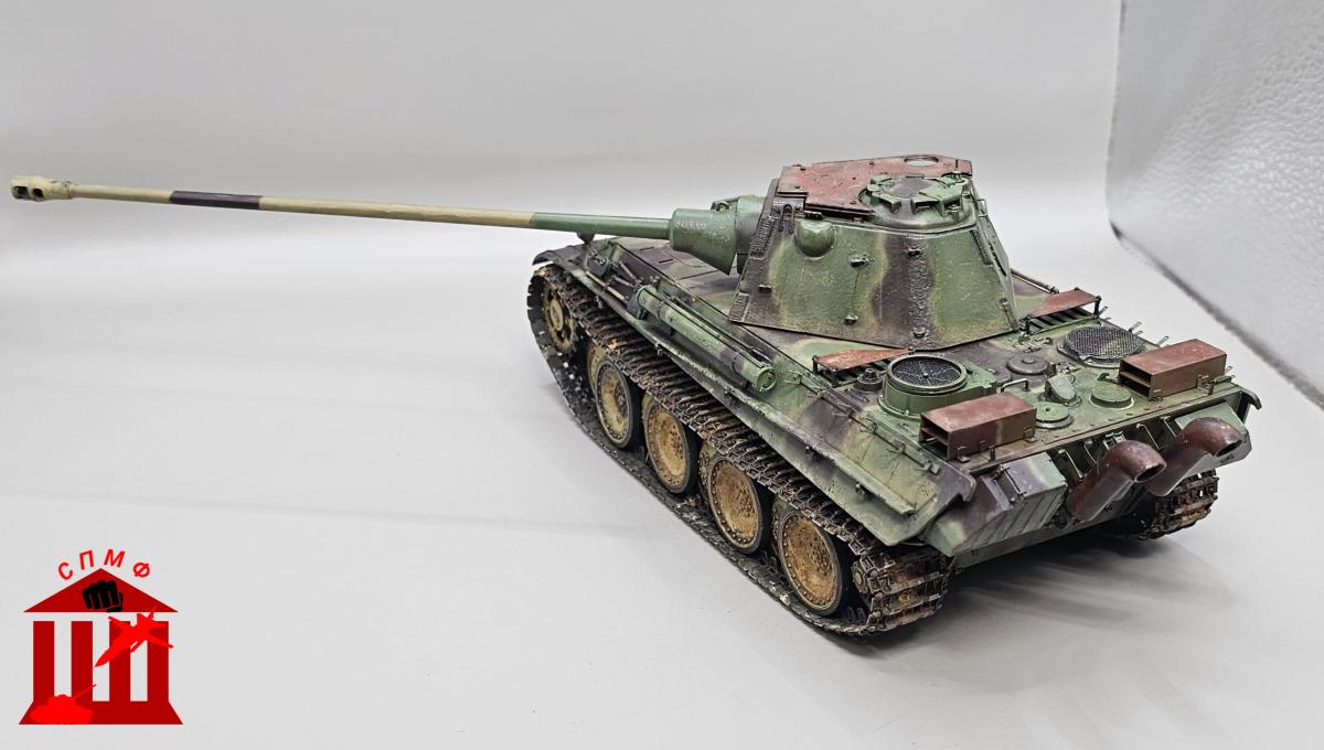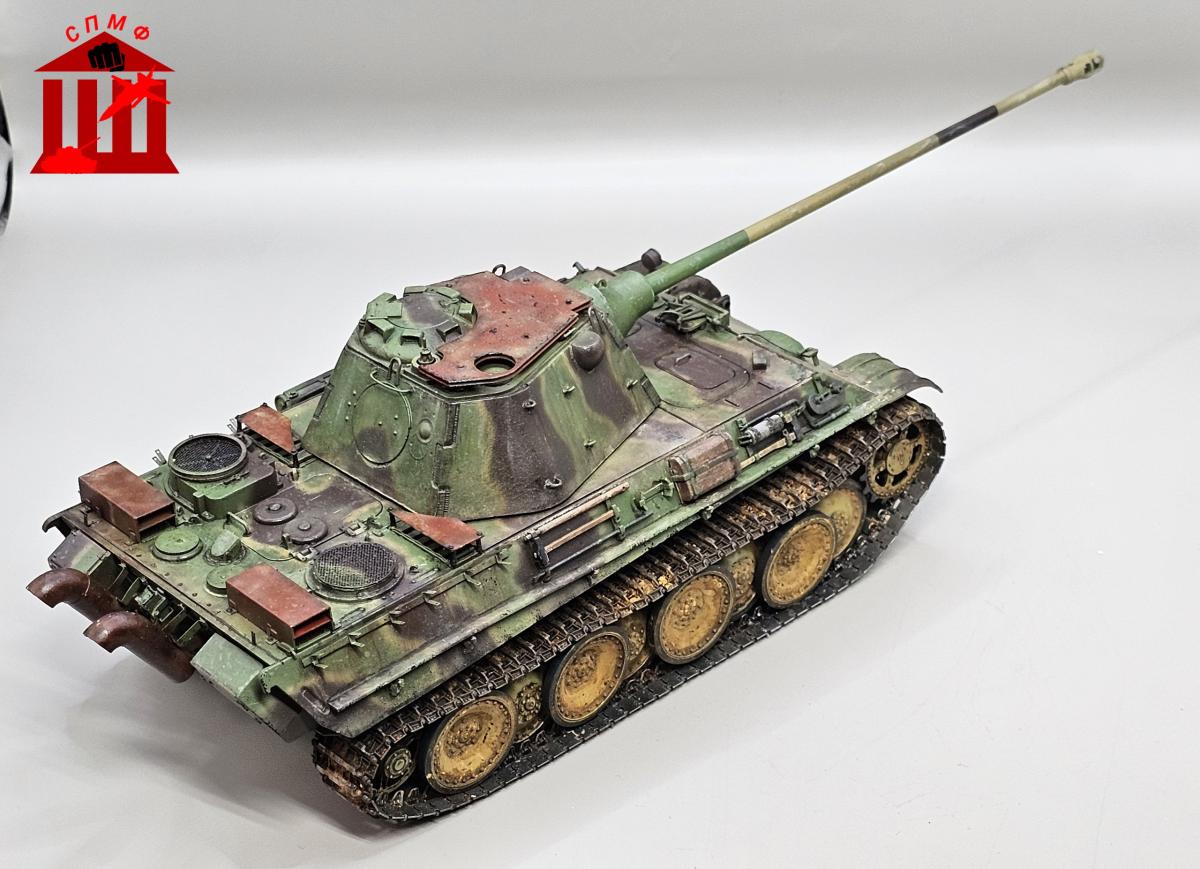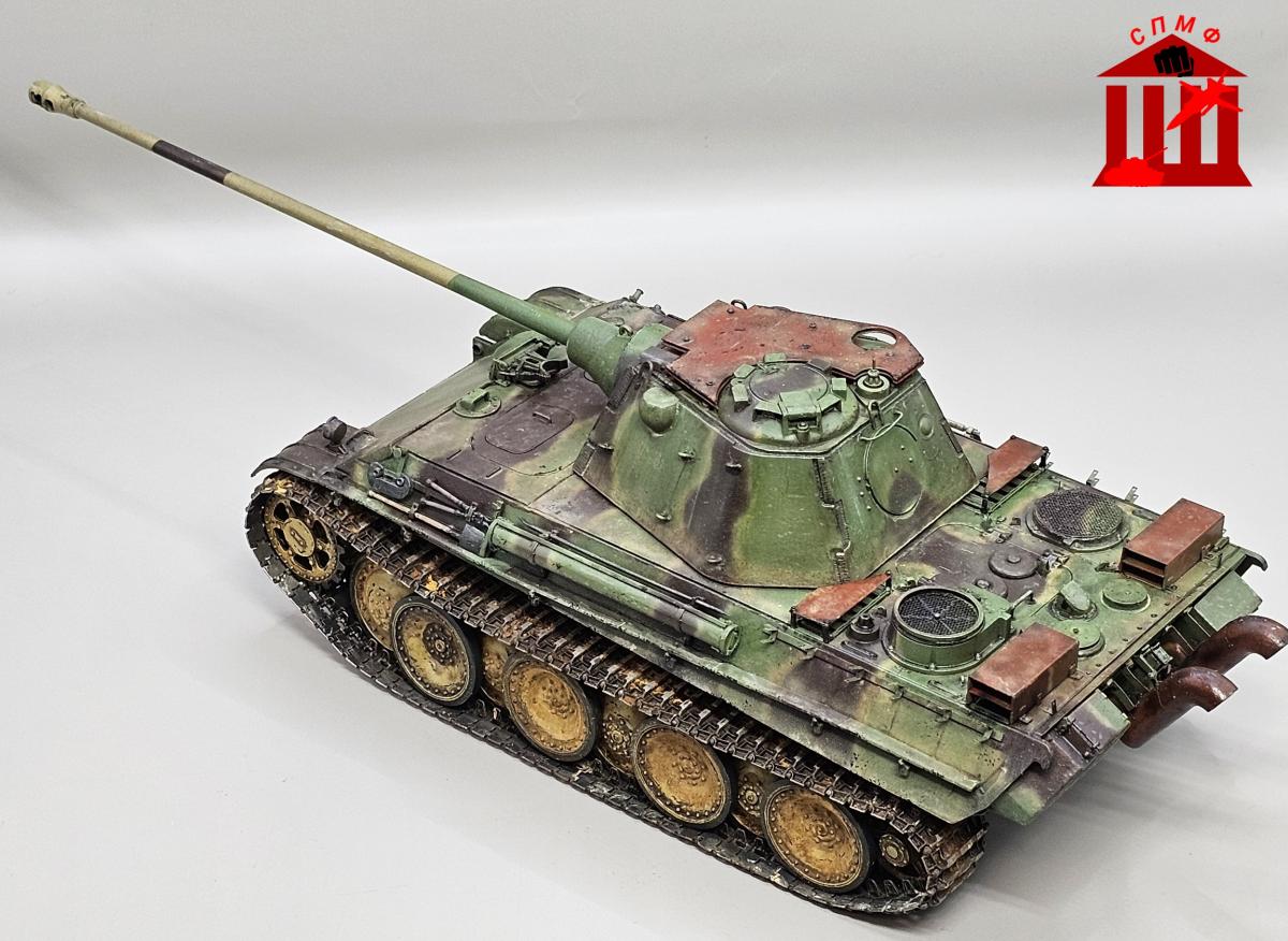 Доброго времени. Модель нереализованного проекта. Захотел сделать с "дыроколом" и ранней ходовой. Гусеницы от мастерклаба, немного травления от RFM.