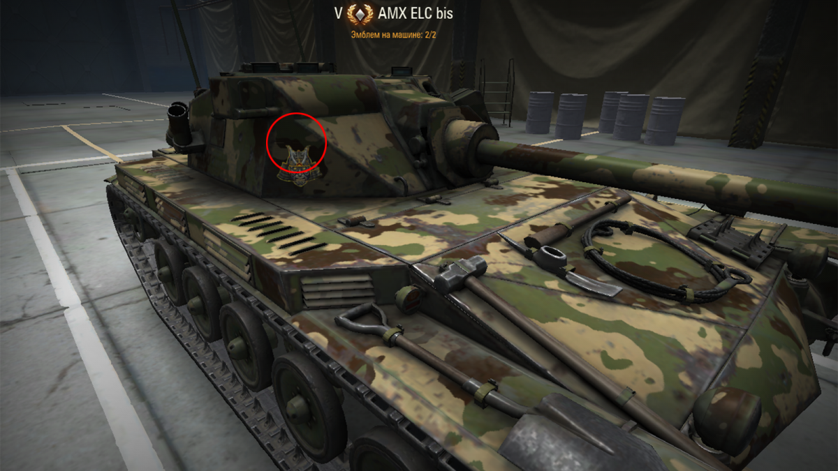 Доброго времени суток. Найдена небольшая погрешность в отображении эмблемы "Шлем самурая" на любом камуфляже или краске на технике AMX ELC bis. На скриншотах, сделанных с разных углов, можно увидеть небольшой дефект, напоминающий несшитую часть mesh-объекта (тонкую линию расхождения текстур, либо их наложение друг на друга).