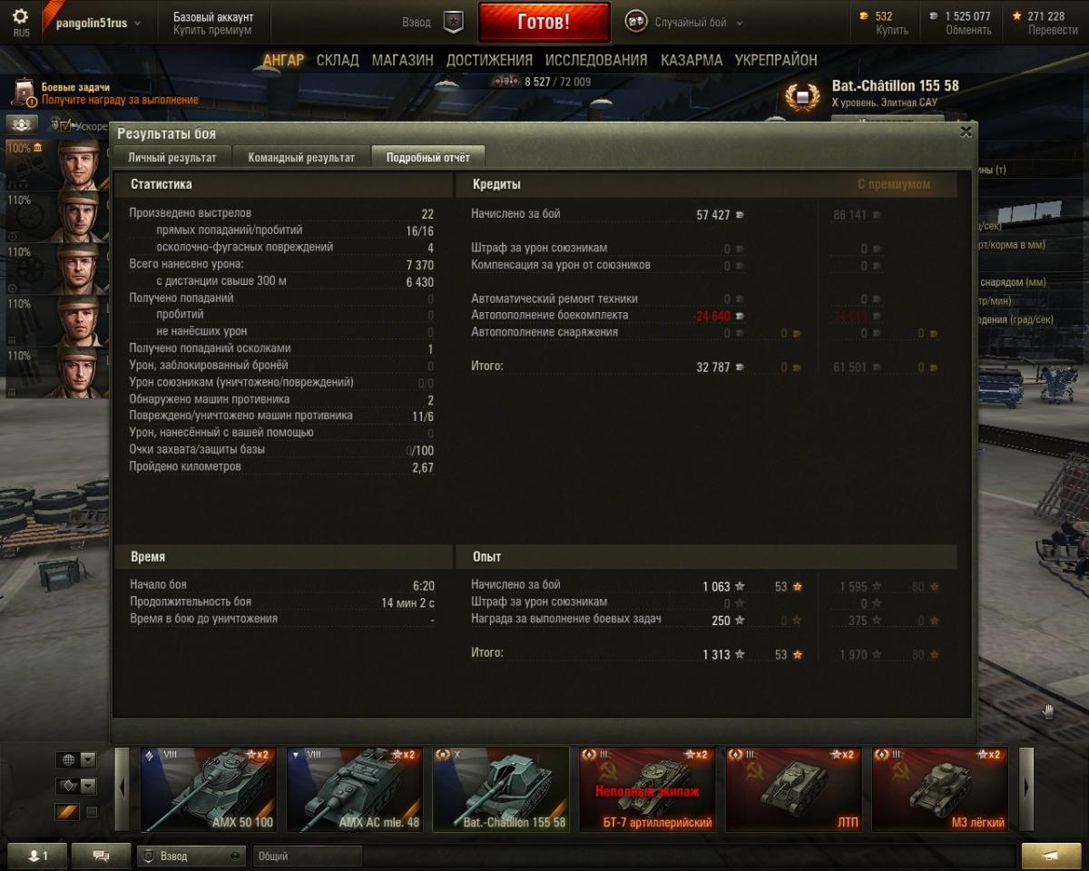 Поражение Бой: Песчаная река Танк: T-25 Получено опыта: 1 030 Получено кредитов: 38 845 Достижения в бою: «Основной калибр», «Поддержка», «Бронебойщик», Знак классности «1 степень» . Экипаж 90% был.Так что и без перков норм играеться.