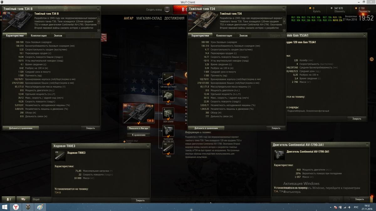 Говорю ДЛЯ ВСЕХ. 34 простой в ангаре НЕТ, 34В с 50%. И это влияет в ТТХ на ангаре, а не в описании