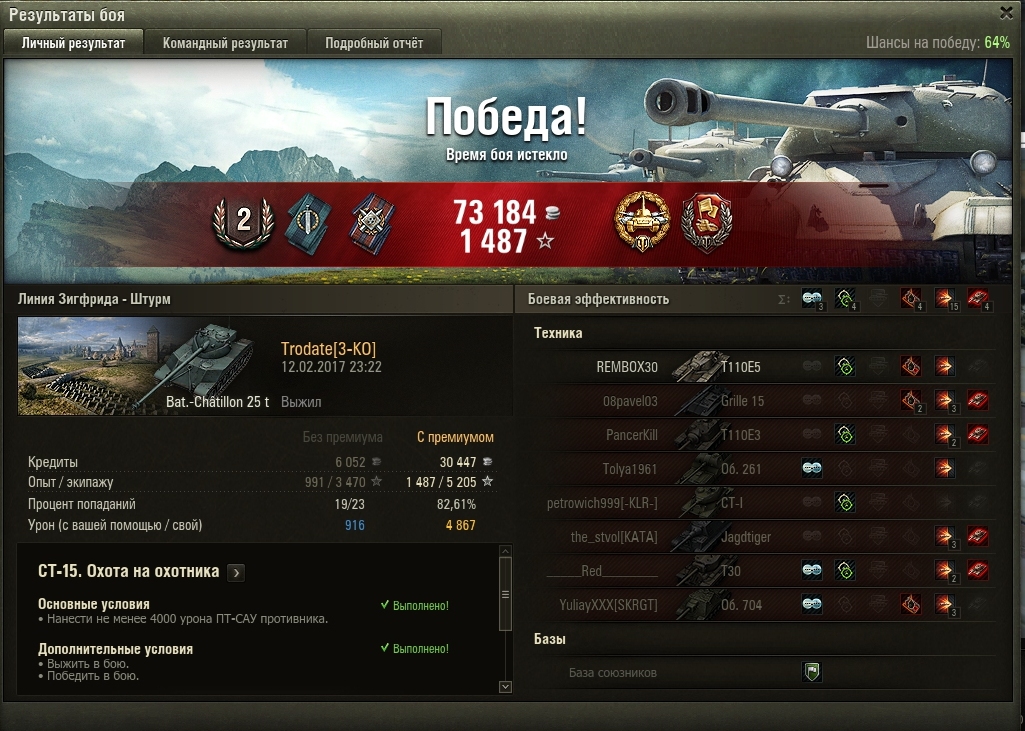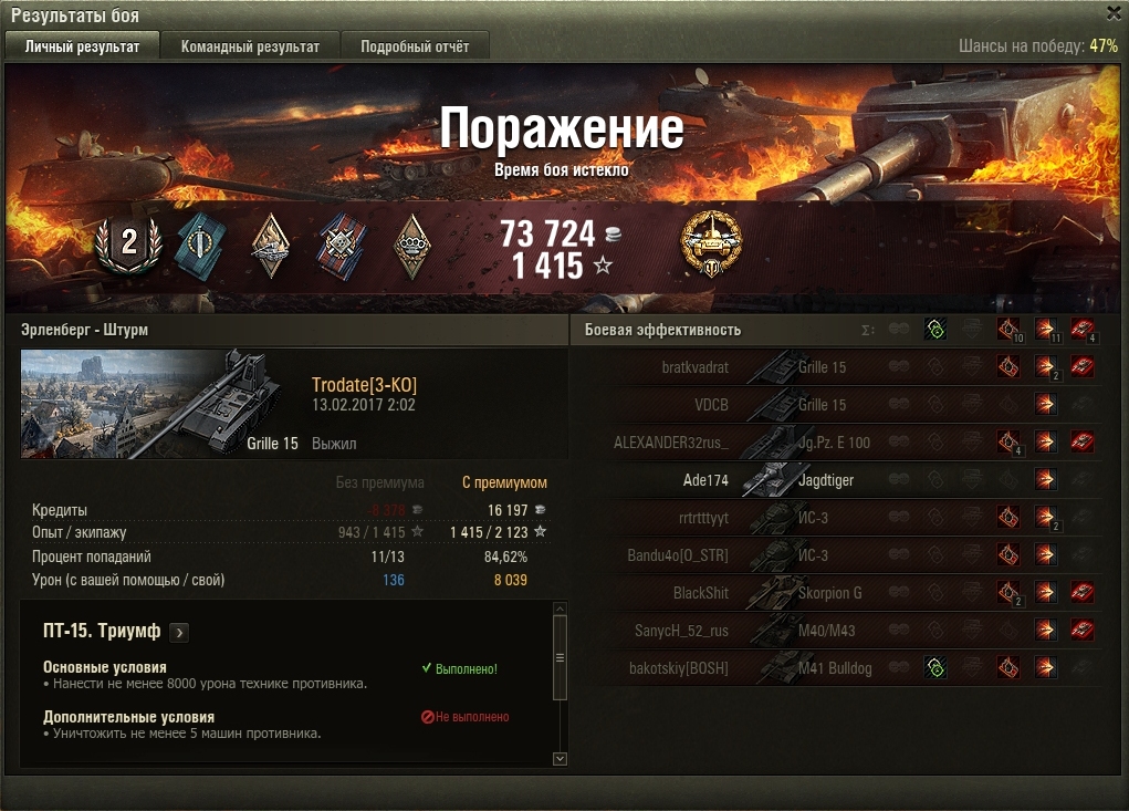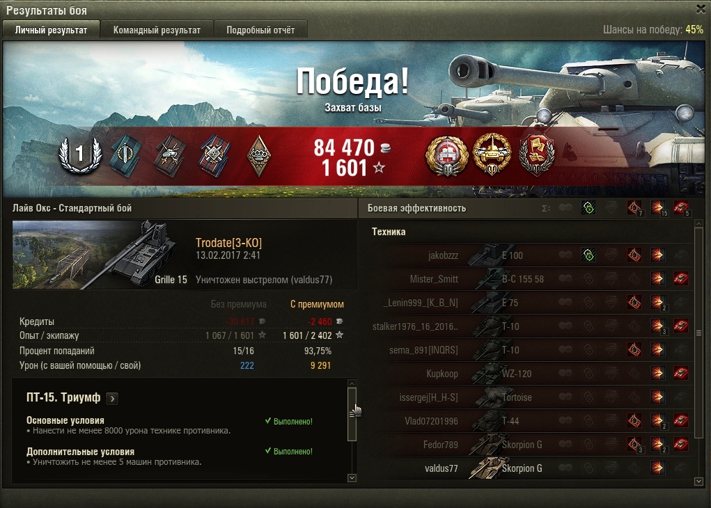 http://cdn-frm-eu.wargaming.net/wot/ru/uploads/monthly_02_2017/post-6147209-0-69605800-1486996064_thumb.jpghttp://cdn-frm-eu.wargaming.net/wot/ru/uploads/monthly_02_2017/post-6147209-0-02328300-1486996080_thumb.jpg В течении часа, первый раз без отличия, второй раз с отличием, 260 в ангаре. Ночью звезды благоволили и ст15 зашло и пт15, вбр повернулся "лицом"