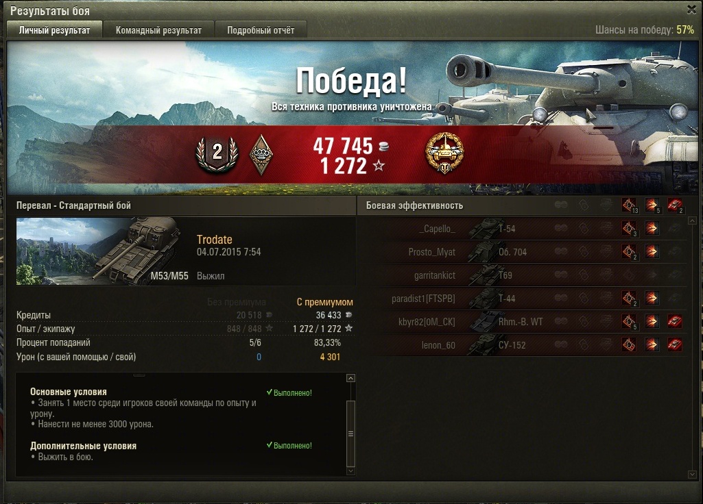 Посмотрел твой реплей. Первый, второй и последний выстрелы просто шедевры)))) особенно последний, сам там люблю заныкаться и ждать гостей для последнего выстрела в режиме пт, теперь обязательно буду переезжать))) Что поразило так это то, что ты стоял на таком уклоне но всё летело точно в круг сведения, никаких перелетов и недолётов. Если не сложно кинь скрин перков экипажа. К сожалению реплеи не храню, на днях тоже удачно покидал, скрин прилагается)