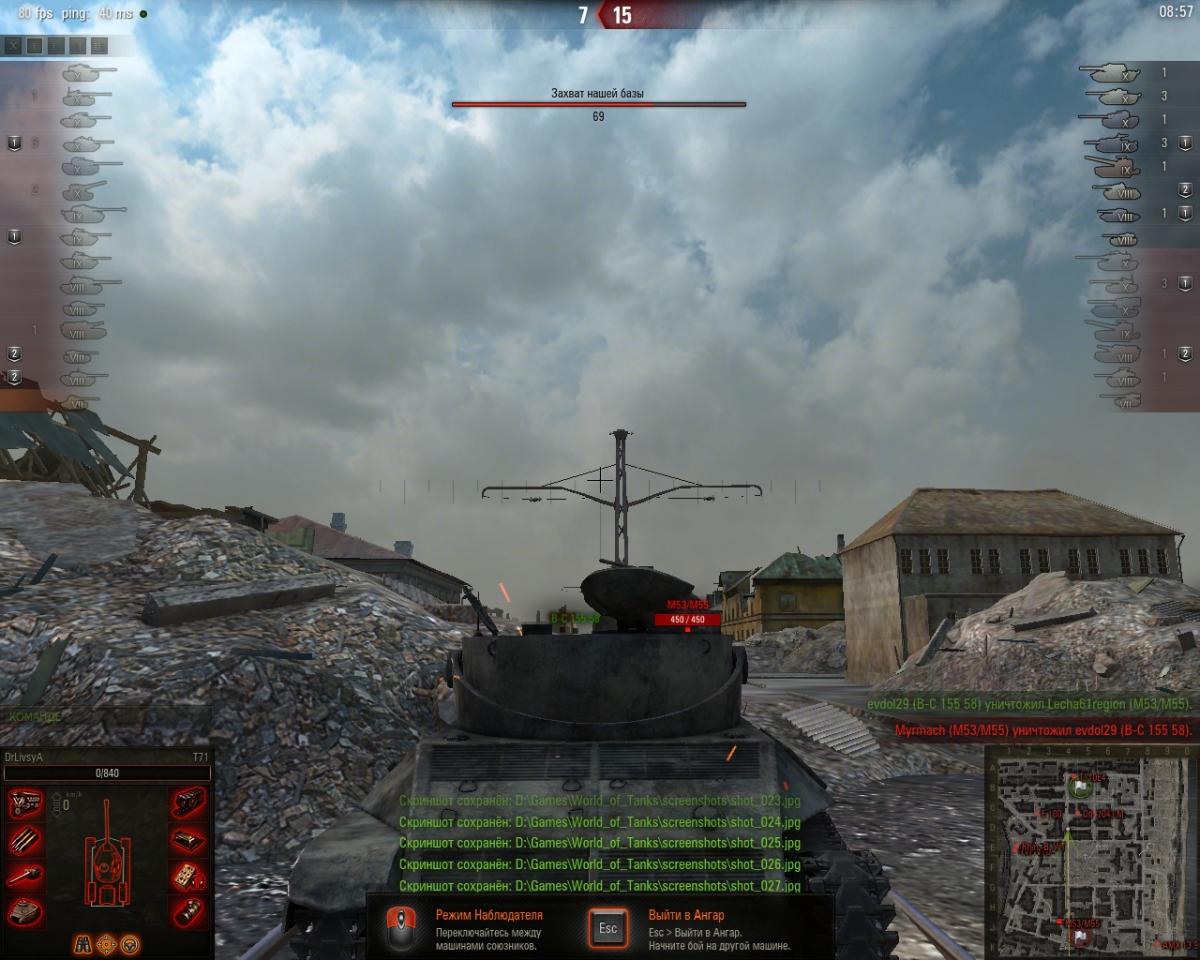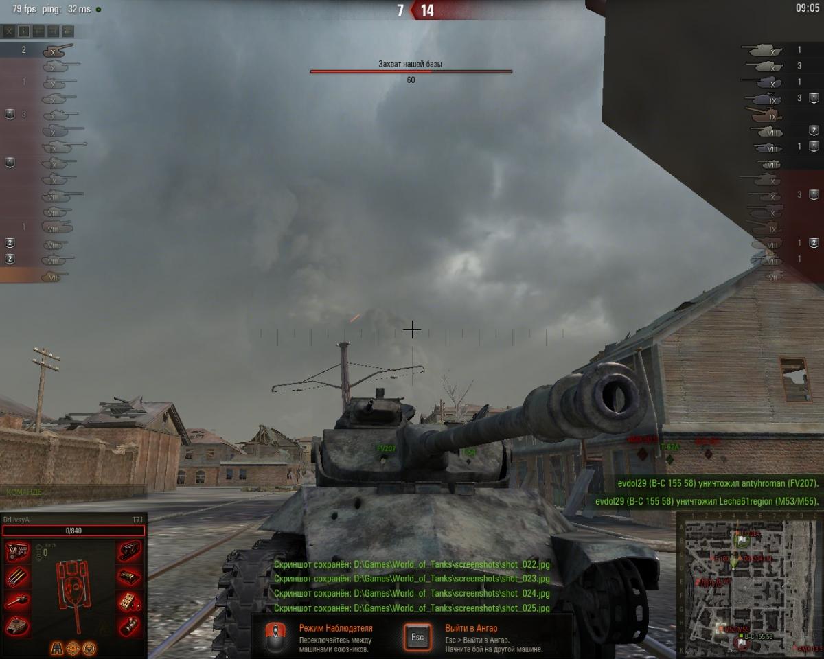 Я в Сталинграде стал сделать начальный просвет, труба включилась, а меня сваншотила Т-49, своей косой фугасницей, из инвиза, издалека... Ну, я пошел попил чайку и, в ожидании окончания боя, начал рассматривать остов своего Т-71. Оказывается, если смотреть спереди через дырочку слева от пухи, то ли от прицела, то ли от пулемета, то ли от осколка, в задней части башни Есть дыра, а если сзади - Нету! http://cdn-frm-eu.wargaming.net/wot/ru/uploads/monthly_12_2015/post-6180828-0-29819400-1451413710_thumb.jpghttp://cdn-frm-eu.wargaming.net/wot/ru/uploads/monthly_12_2015/post-6180828-0-70952700-1451413717_thumb.jpghttp://cdn-frm-eu.wargaming.net/wot/ru/uploads/monthly_12_2015/post-6180828-0-96584300-1451413724_thumb.jpghttp://cdn-frm-eu.wargaming.net/wot/ru/uploads/monthly_12_2015/post-6180828-0-37249600-1451413732_thumb.jpghttp://cdn-frm-eu.wargaming.net/wot/ru/uploads/monthly_12_2015/post-6180828-0-14962000-1451413742_thumb.jpghttp://cdn-frm-eu.wargaming.net/wot/ru/uploads/monthly_12_2015/post-6180828-0-62142900-1451413755_thumb.jpghttp://cdn-frm-eu.wargaming.net/wot/ru/uploads/monthly_12_2015/post-6180828-0-79984700-1451413765_thumb.jpghttp://cdn-frm-eu.wargaming.net/wot/ru/uploads/monthly_12_2015/post-6180828-0-56611500-1451413773_thumb.jpghttp://cdn-frm-eu.wargaming.net/wot/ru/uploads/monthly_12_2015/post-6180828-0-25760300-1451413780_thumb.jpg Наверно у меня слишком низкие настройки графики стоят