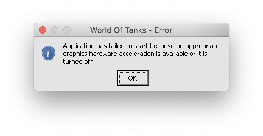 При запуске версии 3.3 после сегодняшнего обновления, выскакивает ошибка при нажатии на кнопку Играть http://cdn-frm-eu.wargaming.net/wot/ru/uploads/monthly_04_2020/post-62220083-0-14709000-1587579838_thumb.png и даже не показывается окно игры Обновил ВГЦ до 3.3.3 Ошибка исчезла, показывается окно игры, картинка загрузки... Потом черный экран и все, тишина. Понятно, что писать в поддержку смысла нет вообще никакого. Кто сталкивался с такой проблемой после обновления последнего? Кто как запускает игруху на маках, поделитесь методом/файлами)
