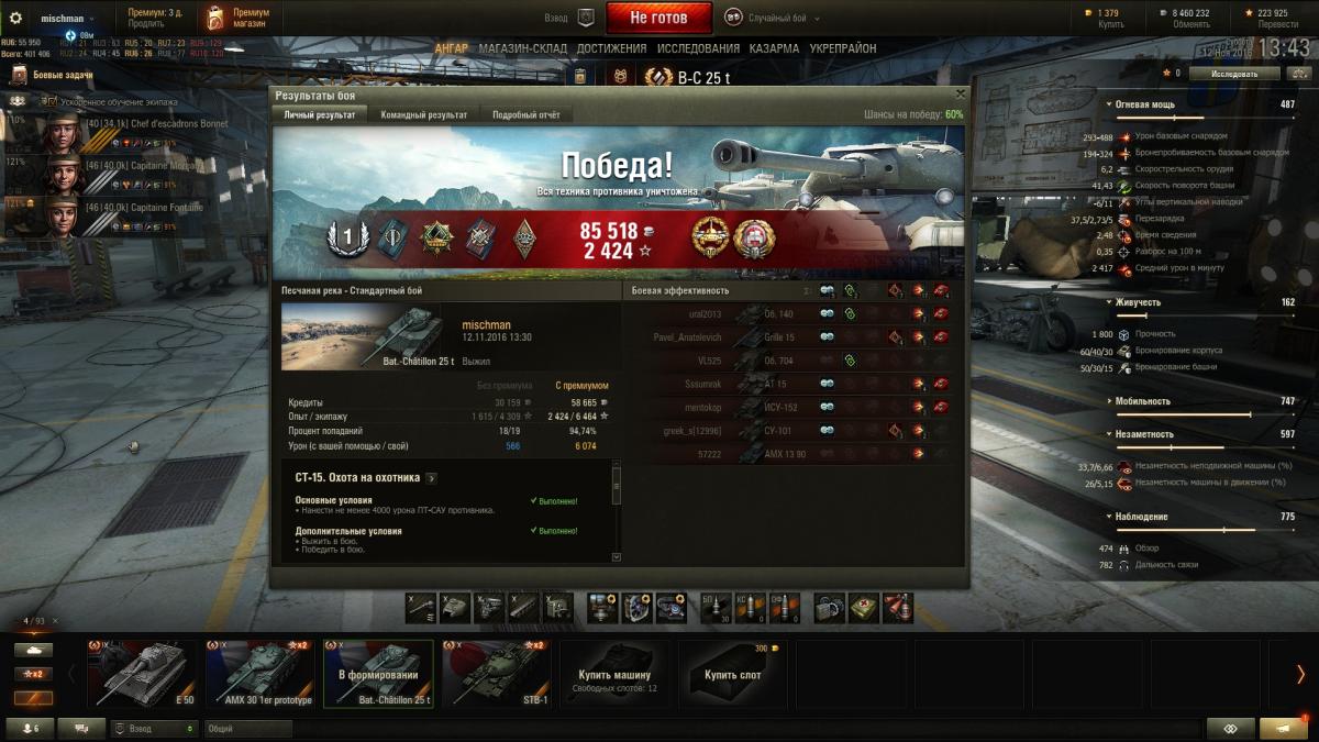 Для выполнения 25х5 понадобилось 54 боя. Очень доволен балансировщиком: 7/6/5.....25(46%) 6/5.....11(20%) 6/5/4....7(13%) 5.......6(11%) 5/4....5( 9%)