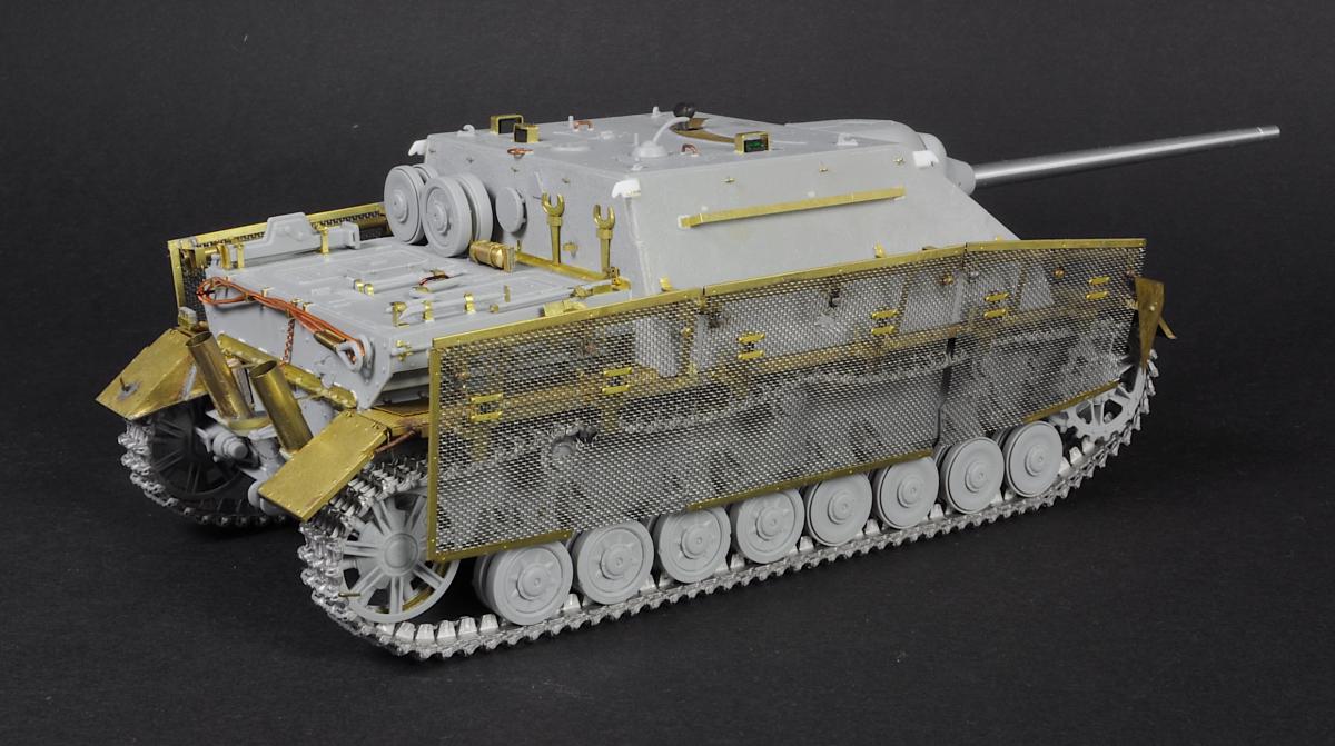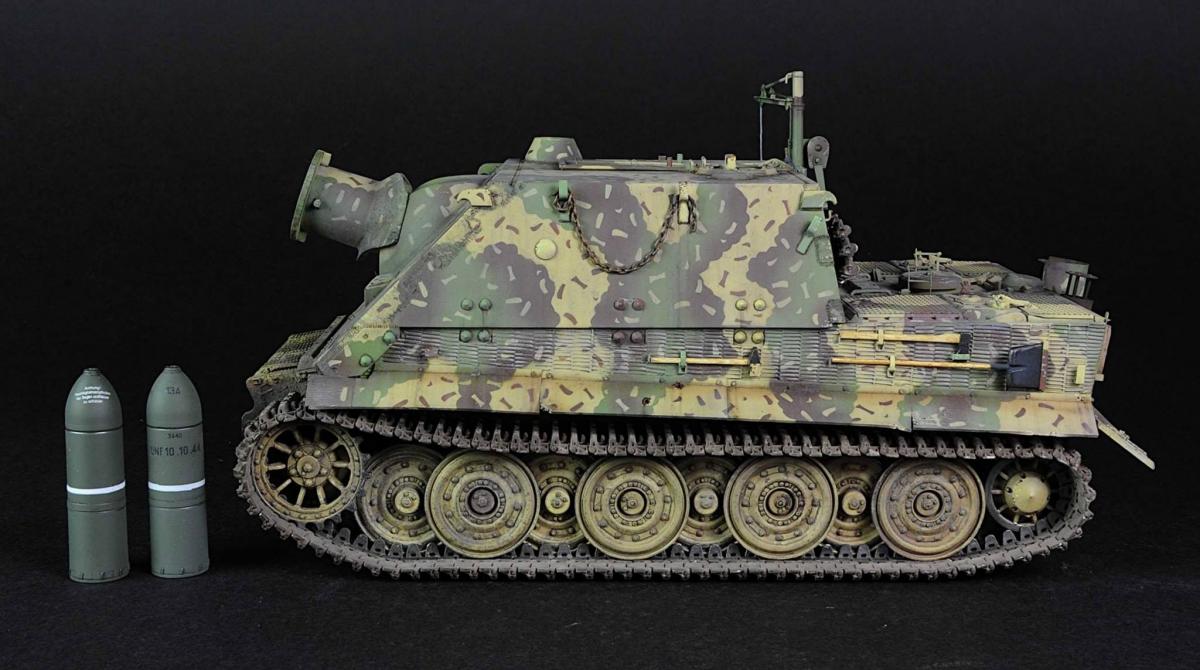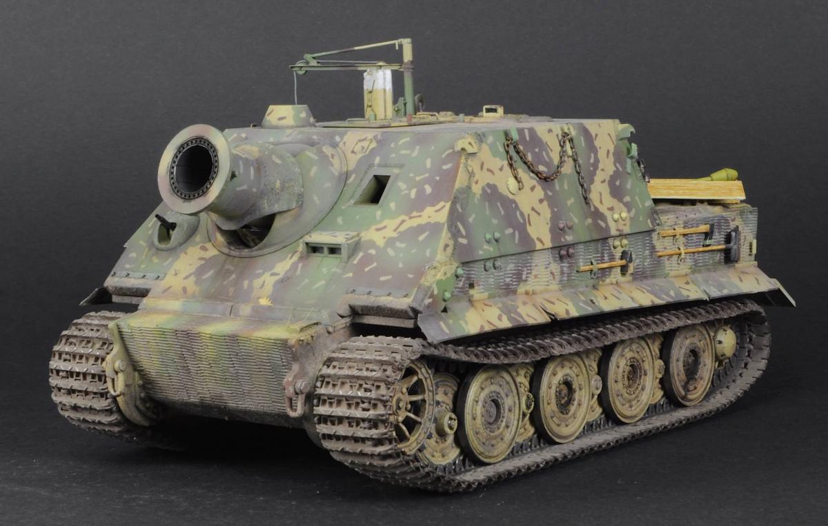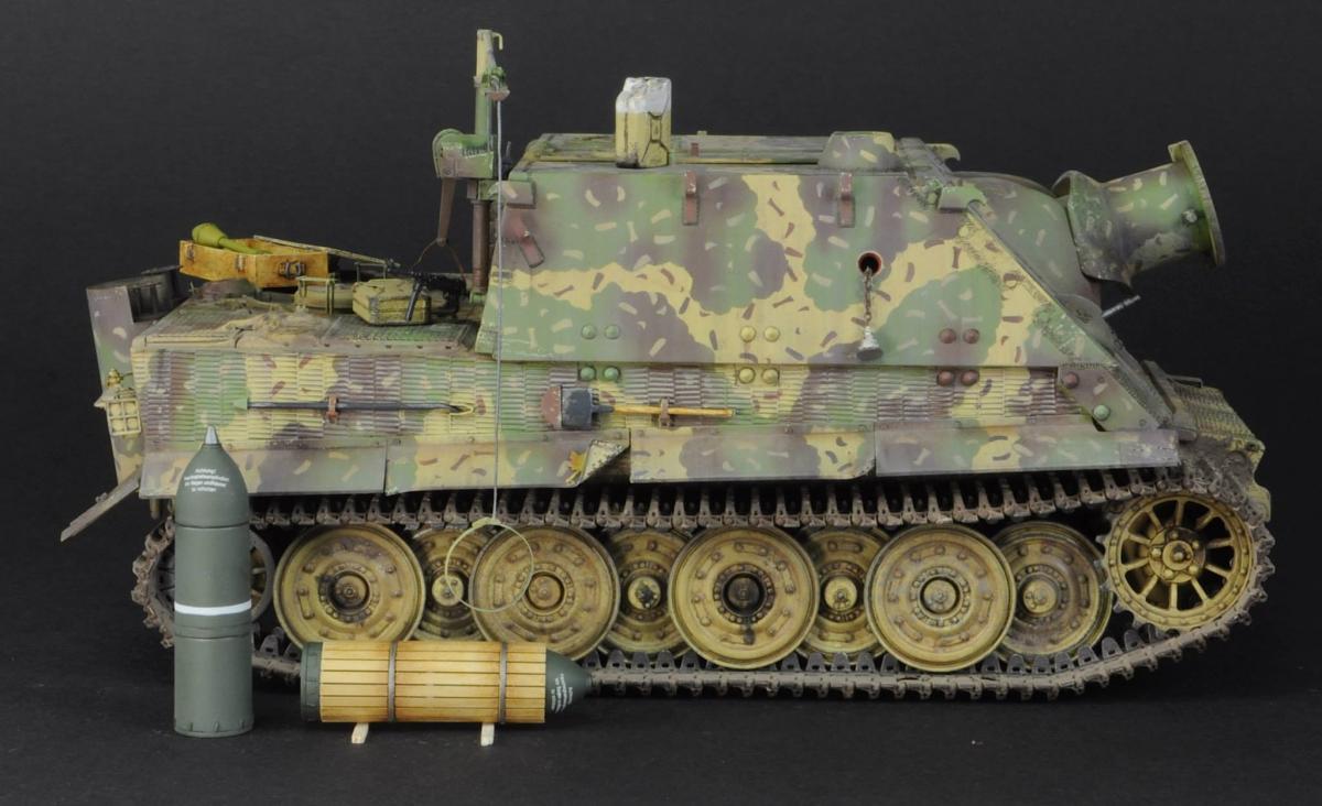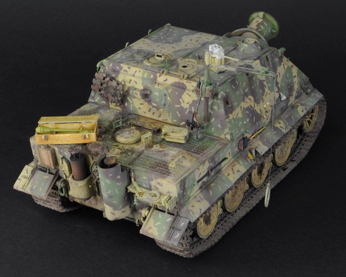 Хорошая яга получилась! Отлично нанесли камо, попали в цвет, но тонировка немного хромает, кое где непонятные разводы, еще бы немного разнообразить сколы и потертости, но это на любителя. По сборке: проблема со стыками броневых листов в районе сварных швов, ну и можно было бы заменить пружинки на задних брызговиках. По нанесению камо на ванне вот фото что бы снять сомнения)
