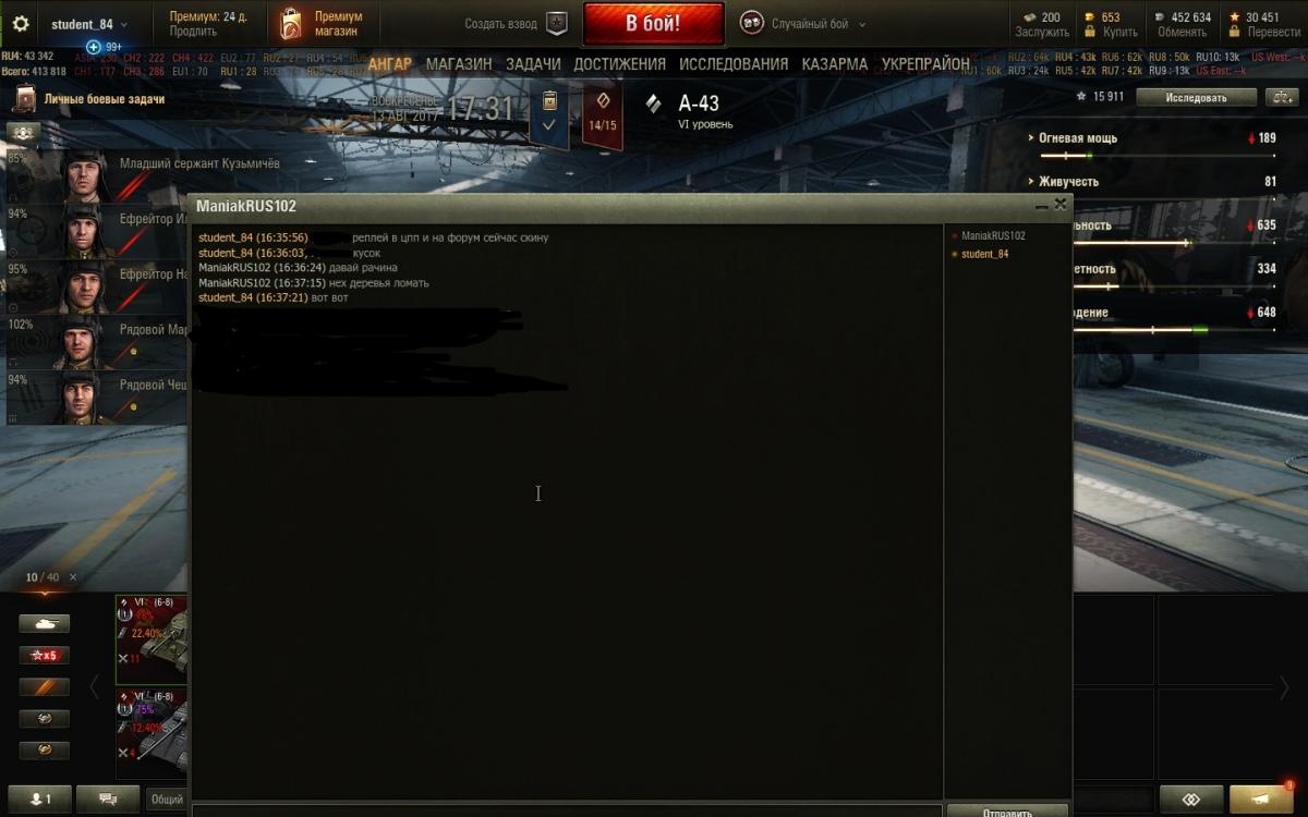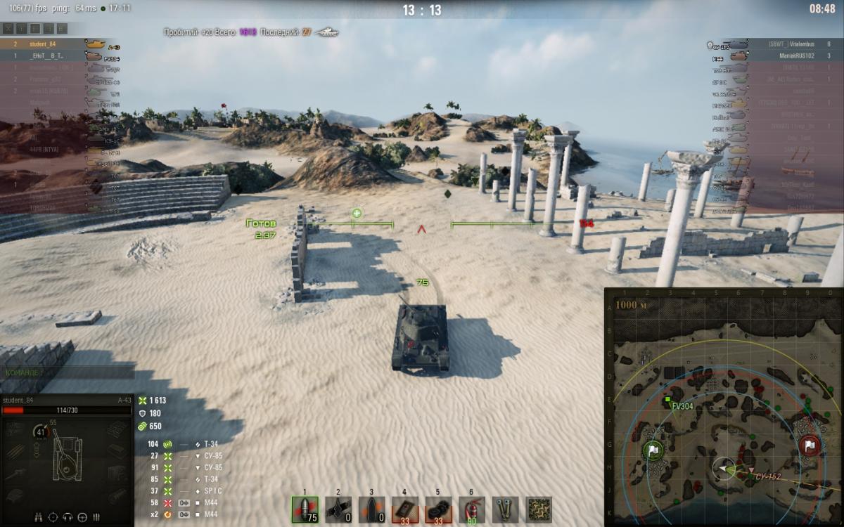 Доколе "раки" со всякими ЗМ будут портить игру? Я не статист, но кое что умею в этой игре, но такой от такой наглости пригорело. Я сюда пришел не плакаться а реально показать, и задать вопрос доколе?Сам рэплей боя http://wotreplays.ru/site/10354761#aerodrom-student_84-a-43 итоги боя ибо психанул и вышел из боя http://cdn-frm-eu.wargaming.net/wot/ru/uploads/monthly_08_2017/post-62931015-0-29741100-1502632788_thumb.jpg теперь суть. Остались вдвоем против су 152 и арты на м44. Последний раз светился на центреhttp://cdn-frm-eu.wargaming.net/wot/ru/uploads/monthly_08_2017/post-62931015-0-53975100-1502633611_thumb.jpg лампочки нет, поэтому отстояв 10 сек решаю объехать по большой дуге и убить сначала арту, а потом думать что то со су 152. завалил пальмочкуhttp://cdn-frm-eu.wargaming.net/wot/ru/uploads/monthly_08_2017/post-62931015-0-27866200-1502633948_thumb.jpg завалил второе деревце,http://cdn-frm-eu.wargaming.net/wot/ru/uploads/monthly_08_2017/post-62931015-0-84113700-1502634203_thumb.jpg ну собственно итог http://cdn-frm-eu.wargaming.net/wot/ru/uploads/monthly_08_2017/post-62931015-0-21294300-1502634330_thumb.jpg а теперь вопрос к знатокам? Это чтобы было, скил арты или все таки добрый человек который написал скрипт, который показывает где я ехал? Вот скиловик https://kttc.ru/wot/ru/user/ManiakRUS102 Я понимаю, что "статисты" никогда бы не завалили бы деревья, но я не статист, почему в концовке боя я еще должен думать как мне проехать в лесу не завалив дерево или не разрушив сарай? вот что пишет скиловик в ангаре,затерто обмен любезностями на великом и могучемhttp://cdn-frm-eu.wargaming.net/wot/ru/uploads/monthly_08_2017/post-62931015-0-35443400-1502634859_thumb.jpg p.s и да у меня подгорело от наглости и от того что не могу сбить звезду на этом говне чудо танке уже 5 бой подряд....