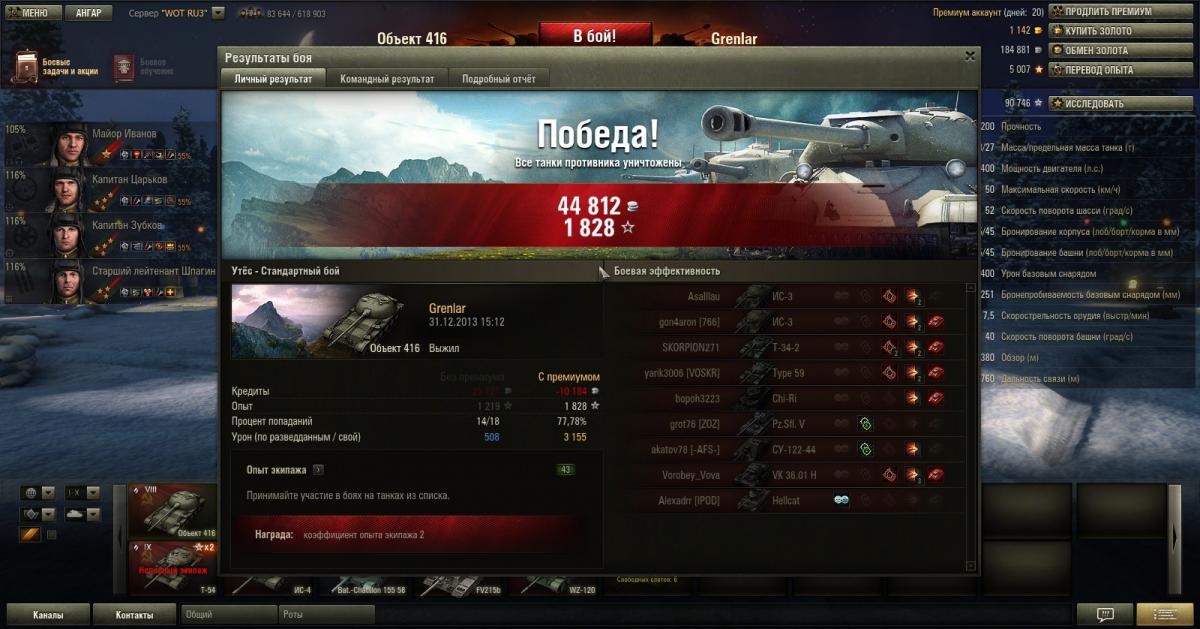 Тоже только что играл, тащунский бой. Остался один на троих, пришлось голдецом пострелять, иначе никак:( Сам шотный был, адреналин через край:) Короче старайтесь, думайте и играйте в удовольствие. А если идут сливы и не набивается дамаг, то тупо оставьте танки и посмотрите фильм, сходите в душ, чаю выпейте и со свежей головой нормально играться будет:) Не знаю какой перк заряжающему взять:( одна фигня осталась, так и оставил пока без перка, мало ли может сбросить придется. На т54 вроде заряжающий за радиста идет, а тут командир:( Не знаю кому как, но лично мне на этом танке мешает играть только его количество хп и дико дорогие снаряды. Остальное терпимо в принципе. Вот и мастер собственно.