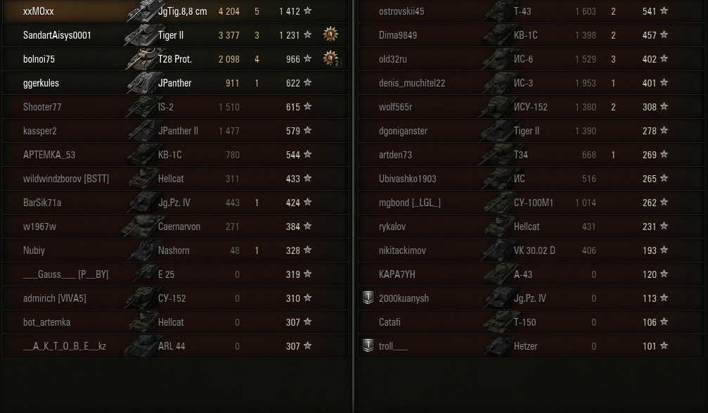 Так я не говорю, что сразу начинают пробивать, я говорю что начинают стрелять голдой и причем много, более того, постоянно удивляет, когда по тебе голдой лепит тот, кто и бб-ми может шить навылет и при этом все равно не пробивает :teethhappy: Кстати, сейчас вошло в моду фугасить Ягодку :teethhappy: . А вот тут согласен полностью (но как обидно, что когда надо рашить все стоят по кустам и приходится делать мув самому, причем в большинстве случаев никто так не соизволит поехать, но тут я всегда знаю почему я сливаюсь и командой недоволен только потому, что они не могут думать... Вот простой пример: штурм на песчаной реке ,сторона атакующих. Пол команды всегда едет на гору, http://cdn-frm-eu.wargaming.net/wot/ru/uploads/monthly_11_2013/post-6320509-0-61276900-1385101230_thumb.jpg при этом за это же время можно доехать "стены обороняющихся" (гребня) и отжать все поле вплоть базы, при этом, как только 2-3 танка делают такой мув, все кто стоит на горе (кроме арты) тупо не могут стрелять, т.к. не хватает дистанции отрисовки (все те же 500м). А времени на бой дается всего 10 мин, из которых 5 теряется только на заехать и встать на гору.....) Простите, накипело... :glasses: