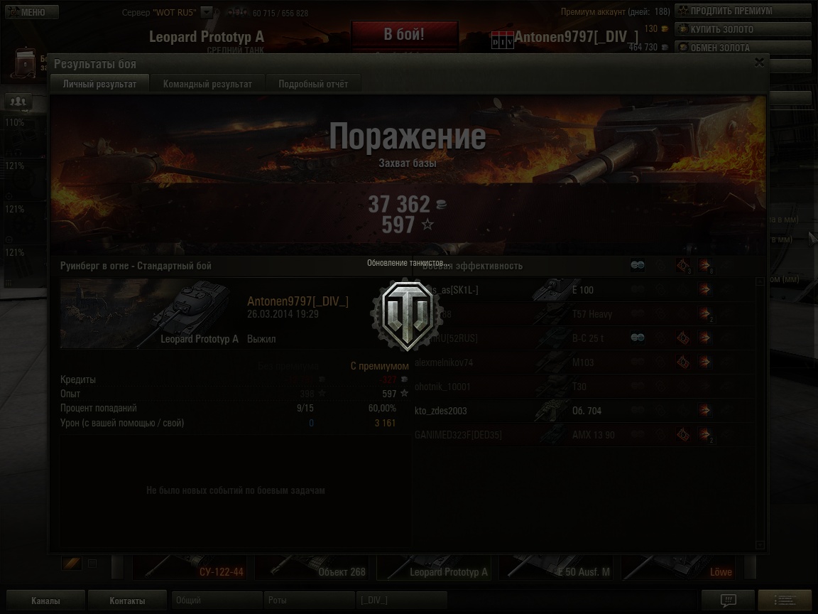 Всем привет!Есть ли у кого-нибудь такая проблема?У меня после боя не прогружает ангар.Скрин скину внизу.Что с этим делать?Мне приходится перезапускать игру.
