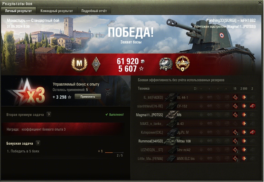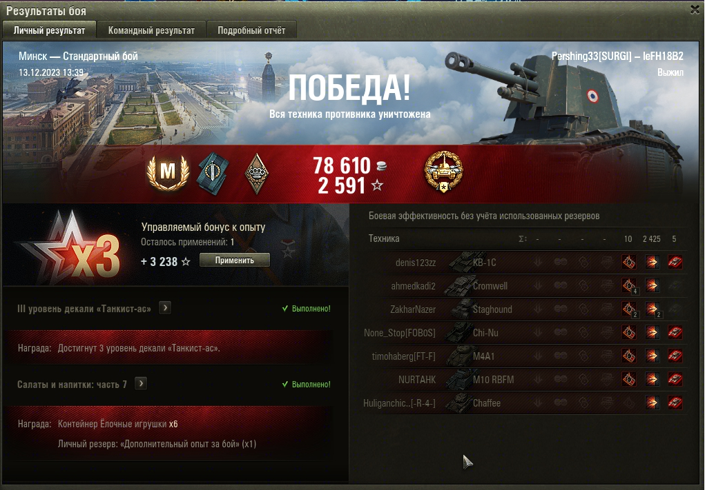 Только скринить послебоевые результаты) Сам, к сожалению, поздно об этом подумал. Выполнил задачу на суммарный насвет 3500 Левшою боёв за 5-6. Лучший результат был более 1200, сколько точно не помню уже)