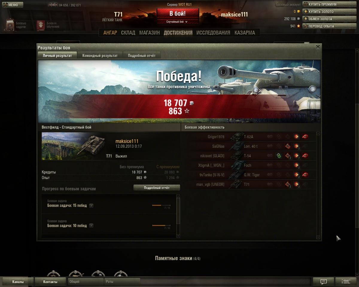 Боевая задача №1 Цель: игрок проигравшей команды должен занять первое место среди союзников по количеству опыта, набранного за бой. При этом количество опыта должно быть равным или превышать: 170 единиц — для танков 1–3-го уровней. 350 единиц — для танков 4–6-го уровней. 460 единиц — для танков 7–8-го уровней. 500 единиц — для танков 9–10-го уровней. Награда: + 50% к опыту и кредитам, заработанным за бой. Сроки выполнения: задача может выполняться неограниченное количество раз. Важно: условия задачи действуют только в случайных боях. Почему нет увеличения + 50% к опыту и кредитам, заработанным за бой?