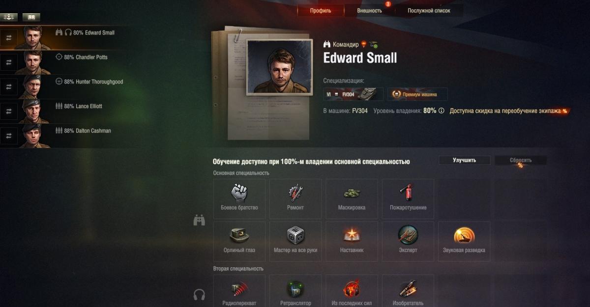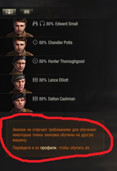 Купил САУ FV304 без экипажа, думал посажу тех, что есть в ангаре (выданных за разные задания). Понял, что экипаж данной САУ состоит из 5 человек, столько в ангаре свободных не было. Решил купить экипаж на данную машину 75% за 20000 серебра за каждого. Купил, решил применить к ним ускоренное обучение, купил книжку для всего экипажа по 100000 опыта, но применить не смог. Игра пишет: Экипаж не отвечает требованиям для обучения: некоторые члены экипажа обучены на другую машину. Кроме того, пишется что данная артиллерия является прем машиной! Подскажите, что я делаю не так и что мне сделать, чтобы применить книжки к данному экипажу? Кстати, предлагается переобучить экипаж на данную машину за голду в количестве 500 шт.