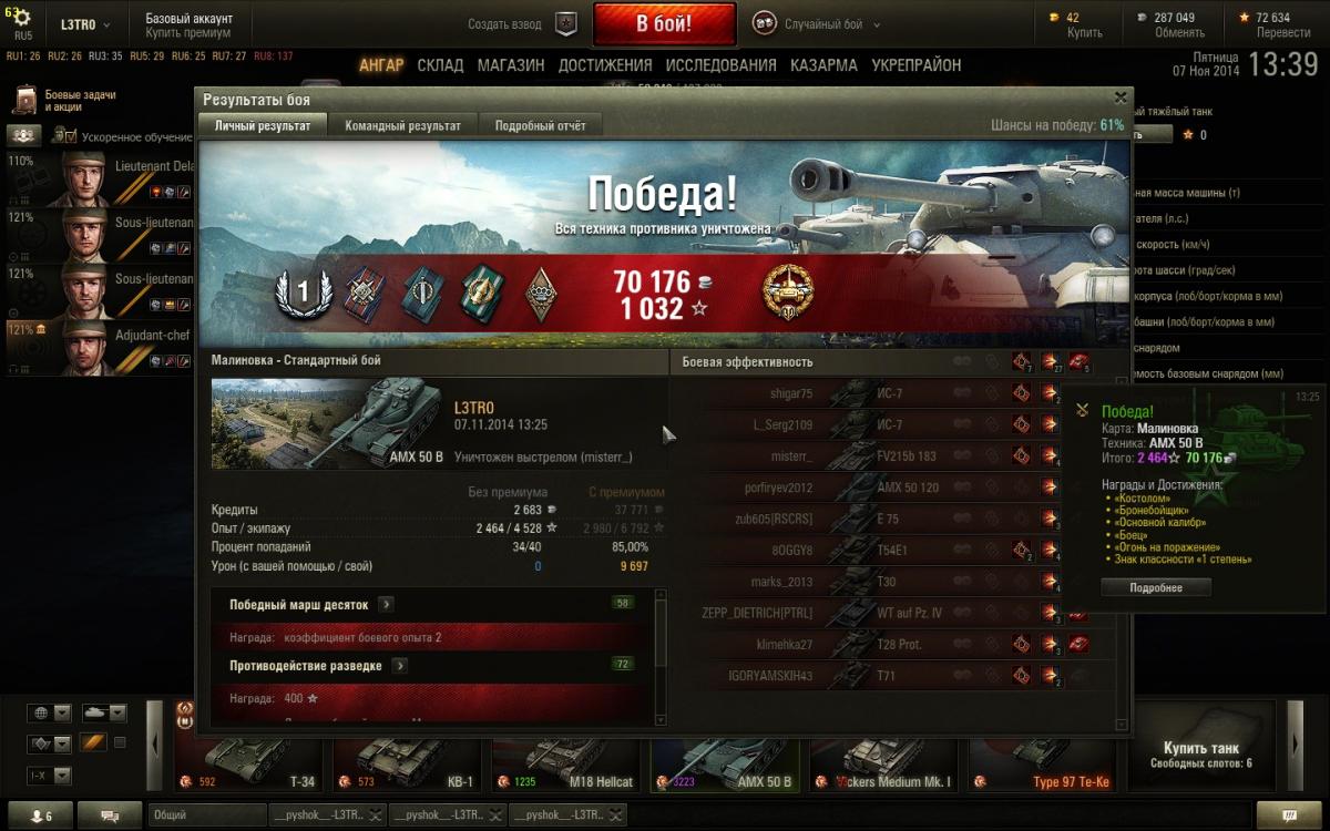 http://wotreplays.ru/site/2511711#himmel_sdorf-l3tr0-t71 наконец то мастера взял, для меня кактус танк...верней не так, все лт..не могу на них играть хоть ты тресни) по 5, по 8 поражений подряд бывает на них.. а тут бой как говорится "1 на миллион" :) вау-вау, 2-ой мастер через бой, что то тут не то...) http://wotreplays.ru/site/2512285#komarin-l3tr0-t71