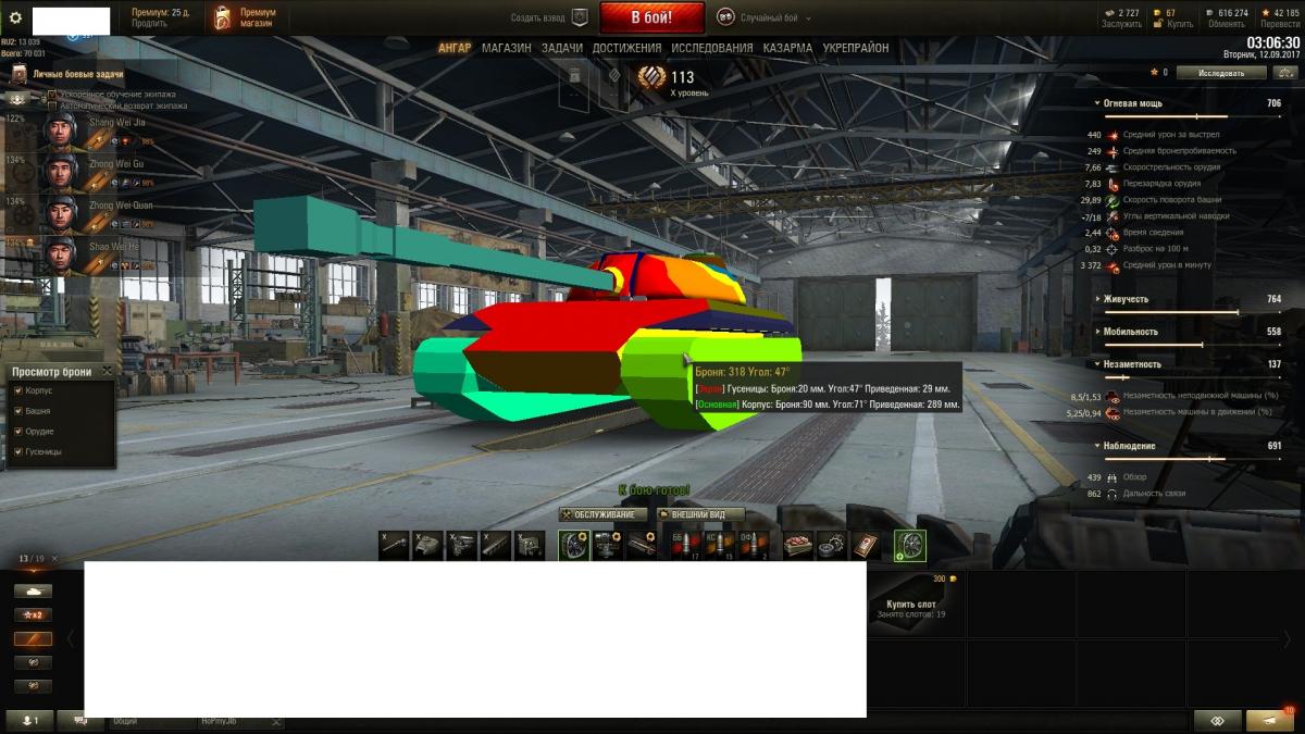самая главная проблема этого танка , это башенка с 50 мм брони которая еще и размером с т 34 , куда ои, они, кв2 ,охо, и прочие бревнометы шьют на фулку, ббшкой , танк ужасно уныл именно изза этой башенки , и она стирает все его плюсы, в позиционке эта башенка тупо торчит вверху задолго до того как ты увидишь противника в прицеле , и он просто пробивает тебя в нее и откатывается , отчего использовать увн просто безполезно , если брать башенку в купе с бортом 38 мм , куда любой снаряд больше 100мм , заходит по 3 калибрам по ругим уголом , танк становится просто убогим , откуда там +-2 уровня боев я вообще не понимаю. Очень интересно кстати откуда взялось в этой башне в ком башенке 50мм , где такой чертеж башни т95 нарыли интересно.