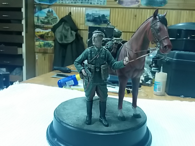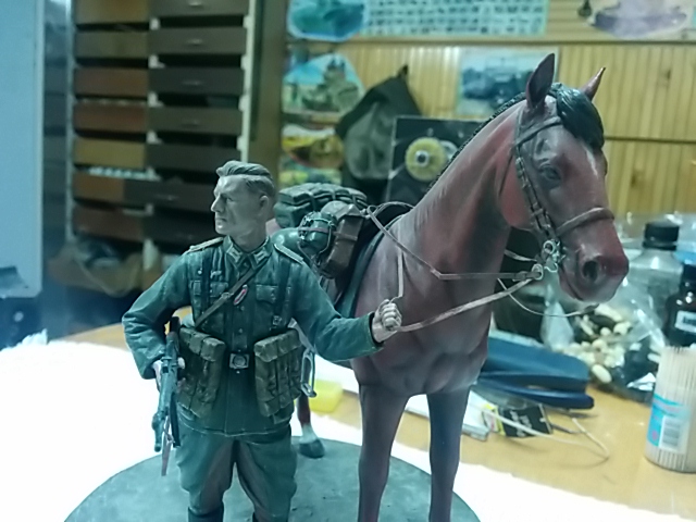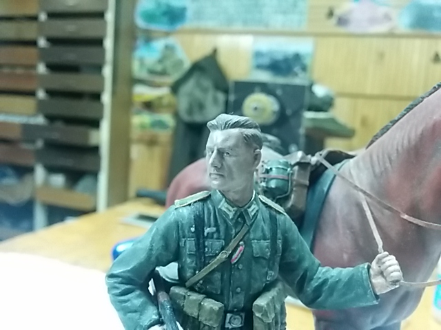 Добрый день. Выставляю модель немецкого кавалериста. Добавил: окантовку погон (нить швейная), система ремней бумага, пряжки провлка. -