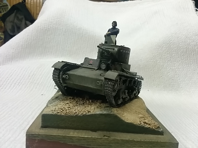 Добрый день. Выкладываю готовую виньетку "Т-26 в пути". Модель фирмы Звезда. Особенность данной модели была в том, что траки были выполнены уже из пластика а не из винила. Из личных доработок: швы, (нить пропитанная клеем, маска орудия делал из жести а так же колпак вентиляционного отверстия на баше.) Основание: песок плюс пва, трава пакля. Модель уже была на выставках т.е в пути соответсвенно приходилось подклеивать то что отваливалось а отваливался в основном танкист. Приятного просмотра.