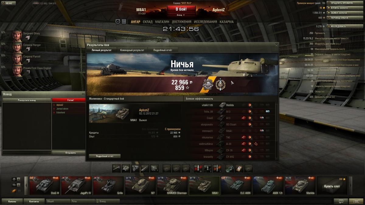 Сегодня 2 военов на ней взял. Убийственный танчег. Но этот бой был жесть. Все ребятки слились в 3 минуты, остались мы с хетзером. Сначала отбили нападение, затем я зашел через гору в тыл, напихал им по самые помидоры, но в конце не успел добить матильду с 17 хп.