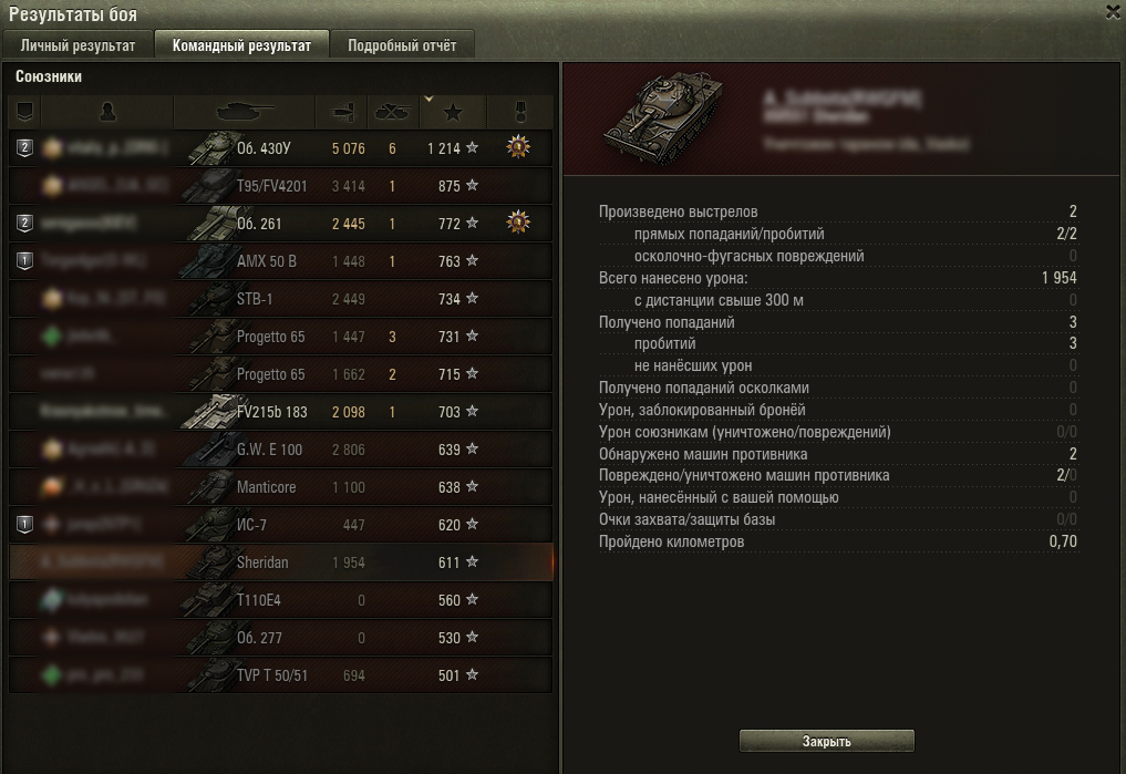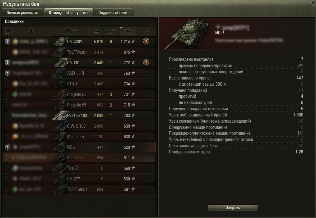 Не получив аргументированного ответа от Rok3r вынужден просить разъяснить ситуацию от более компетентных сотрудников. Укажите, пожалуйста, в чём я просчитался? Почему тяжелый танк 10 уровня получил больше опыта, чем лт имея в 5 раз(!!!) меньше урона по итогам боя и уступая по всем показателям, кроме стрельбы "в молоко" и, возможно, триплекс?Вот анализ на основании официальной статьи по начислению опыта. Бой 12 lvl (все танки 10 уровня) Добавлю - бой 12 уровня уже много лет отменен, вы участвовали в одноуровневом бою 10 уровня. Пора уже это узнать спустя столько лет. Опыт начисляется ИС7 Sheridan За нанесение повреждений вражеским танкам (учитывается разница в уровнях танков). 447 1954 За нанесение критических повреждений вражеским танкам (учитывается разница в уровнях танков) 1 2 За «ассистентские» баллы (любому танку за повреждения, нанесённые союзной техникой во время починки сбитой им гусеницы вражеского танка). 0 0 За обнаружение вражеских танков (за САУ больше, чем за обычный танк). 0 2 Любому танку за повреждения, нанесённые союзной техникой по «засвеченным» им целям. Вы будете получать дополнительный опыт за урон по вашим разведданным за каждый уровень разницы между вашим танком и «засвеченной» целью (но не более 30%). 0 0 САУ — за урон, нанесённый союзной техникой по целям, оглушённым этой САУ. Вы будете получать дополнительный опыт за урон по вашему оглушению за каждый уровень разницы между вашим танком и целью (но не более 30%). - - За сталкивание/утопление вражеских танков. Если танк толкало несколько игроков, опыт делится между ними пропорционально их воздействию на танк. - - За уничтожение вражеского танка (только тому, кто этот танк уничтожил; учитывается разница в уровнях танков). - - За захват базы противника (только захватчикам, пропорционально времени нахождения на базе). - - За получение медали «Защитник» при сбивании захвата собственной базы. - - За то, что ваш танк уцелел после боя. - - За активные боевые действия. Под такими действиями понимается стрельба техники во время боя. Влияние на общее количество опыта не очень существенное, но всё же есть. 7 выстрелов / 6 попаданий / 1 пробитие 2 выстрела / 2 попадания / 2 пробития За урон, нанесённый противнику вашей командой. Чем этого урона больше, тем больше опыта получит каждый игрок. Считается только урон, нанесённый уничтоженным впоследствии танкам. (Коэффициент не очень существенный.) 0 0 За победу команды (+50% опыта каждому игроку) 0 0 При получении достижения «Герой битвы», эпического достижения или взводной награды игроки проигравшей команды получают столько же опыта и кредитов, сколько и игроки команды-победителя. Если играть во взводе с одноуровневой техникой (IV–X уровней), то количество полученного опыта можно увеличить. 0 0 Для премиум аккаунта полученный опыт дополнительно умножается на 1,5. +? +