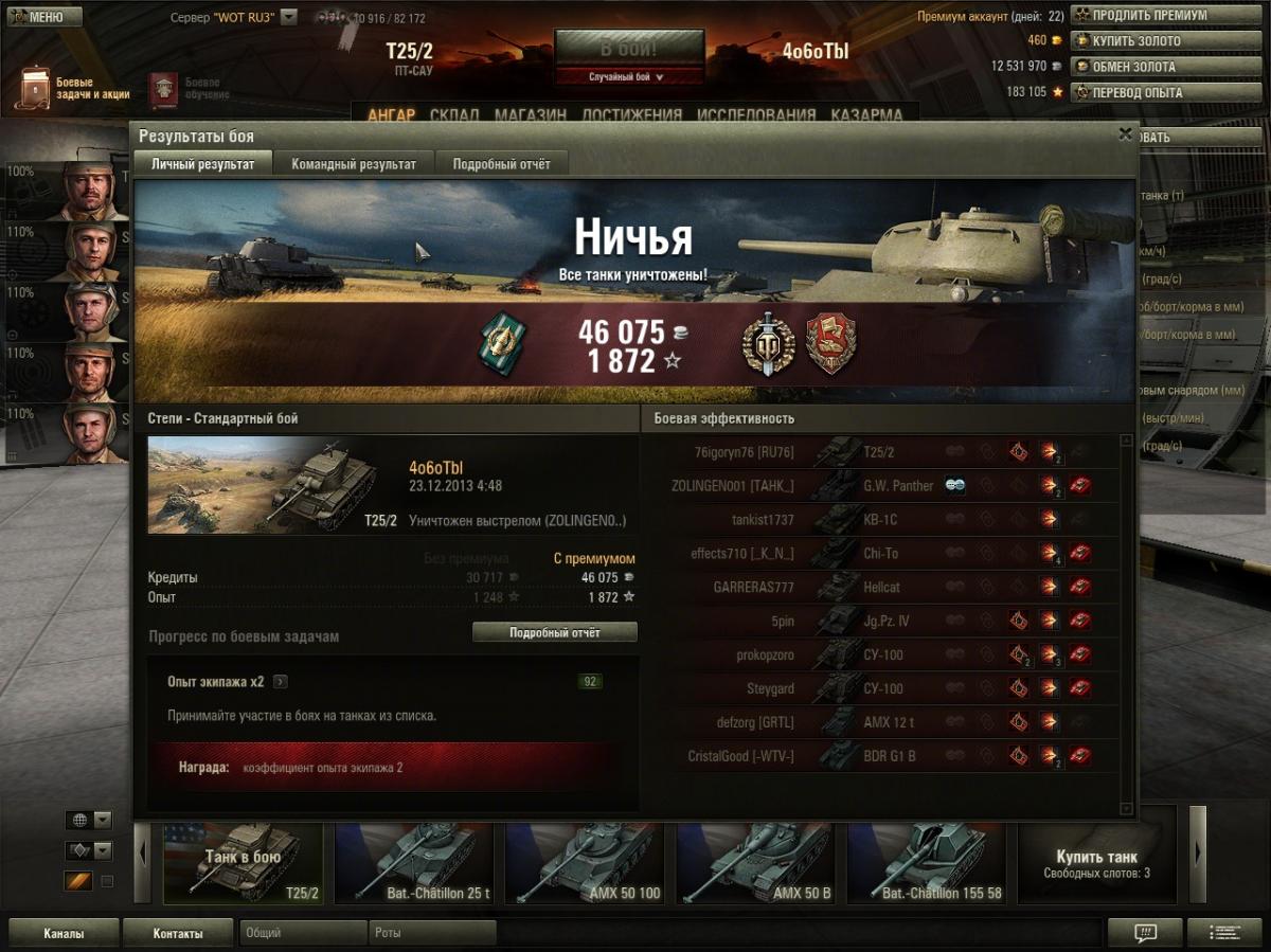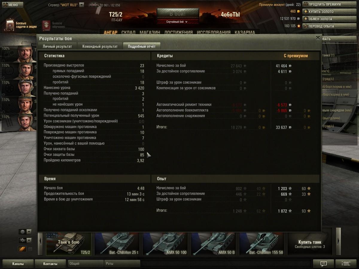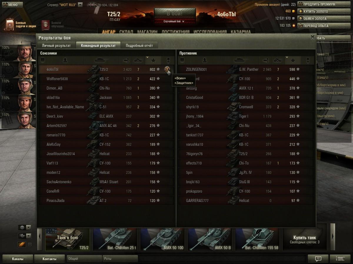 Доброго времени суток. Возник вопрос по результату боя. Ситуация следующая: Стандартный бой, остаюсь 1 против 2-х противников. Один из них встает на захват моей базы, набирает 85 очков и благополучно при моем скромном участии погибает. После этого я еду и встаю на захват базы противника. Таймер добегает до 100, и тут на меня выезжает оставшийся игрок. Секунды 2 сводимся и одновременно стреляем - мы оба уничтожены. Результат боя - ничья. В итоговых показателях у меня: очки защиты - 85 очки захвата - 100 Медали: воин, защитник. В итоговых показателях последнего противника: Очки захвата: 0 Очки защиты: 0 Собственно, вопрос: если я захватил базу и после этого меня убили, почему ничья (и в этом случае нет захватчика)? Если соперник убил меня до захвата, почему ему не дали медаль защитника ? Он должен был бы сбить все 100, что на мне были, а это больше моих 85 (ему засчитали 0)
