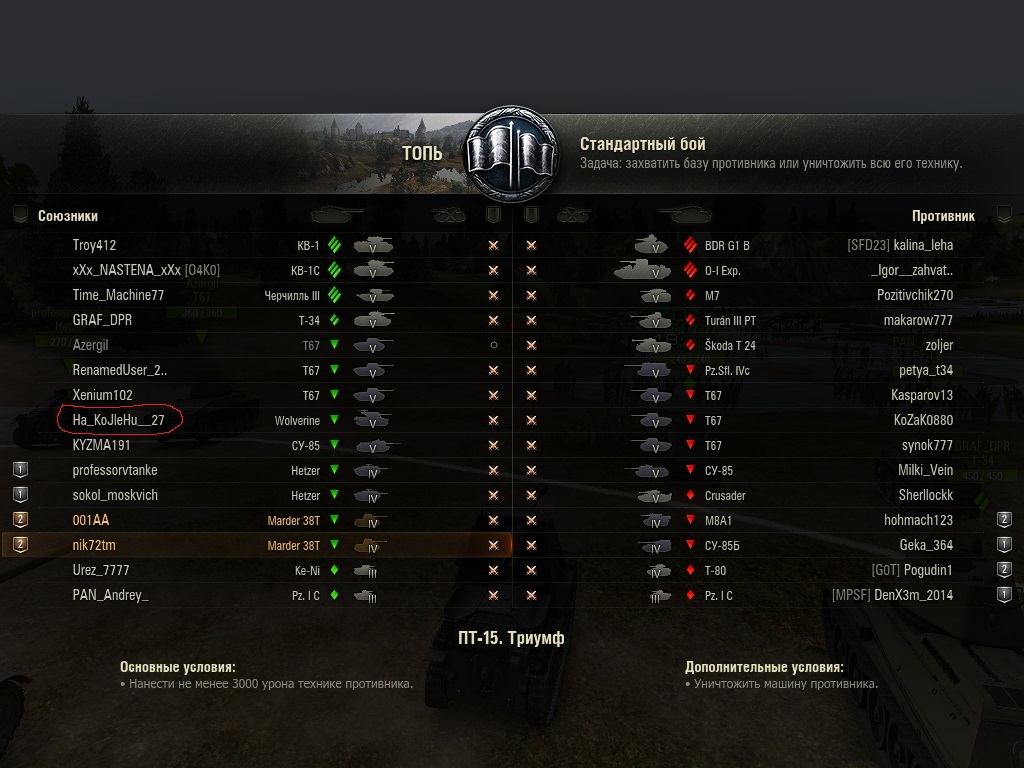 В начале боя игрок с ником (Ha_KoJIeHu__27) начал стрелять по своим. Ни где игрока с таким ником найти не удалось. Как такое может быть? Могу отправить реплей.