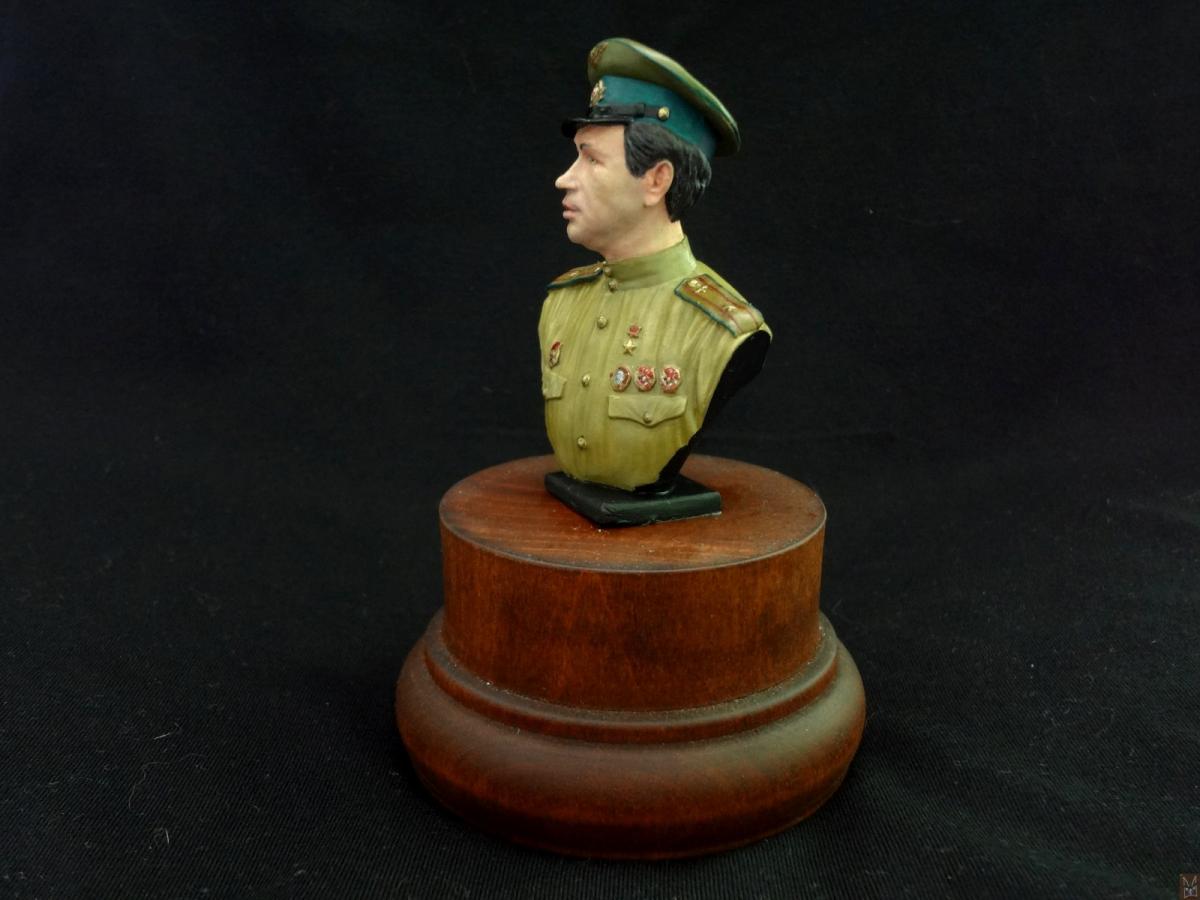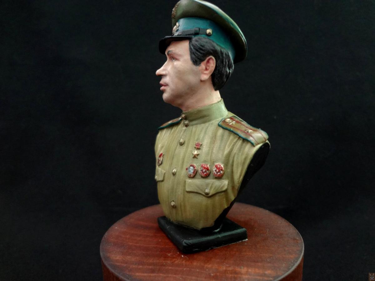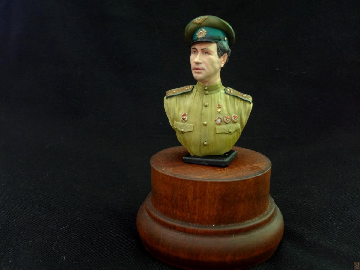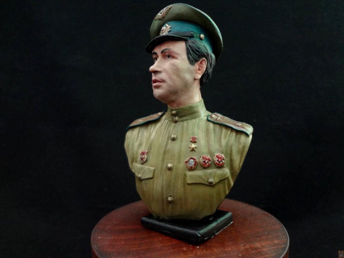 Так получилось, что попал мне в руки оловянный бюст от фирмы EK Castings Маэстро в масштабе 1:10. Впечатление от фигурки двоякое — сходство с «оригиналом» относительное — если в профиль персонаж еще узнаваем, а в фас — кажется слишком худым, но при этом она что называется «смотрится». В конечном итоге бюст скорее можно рассматривать как летчика, похожего на персонажа фильма «В бой идут одни старики». При работе использовалась химия — грунт «Tamiya», акриловая краска «Pacific88». Приятного просмотра!