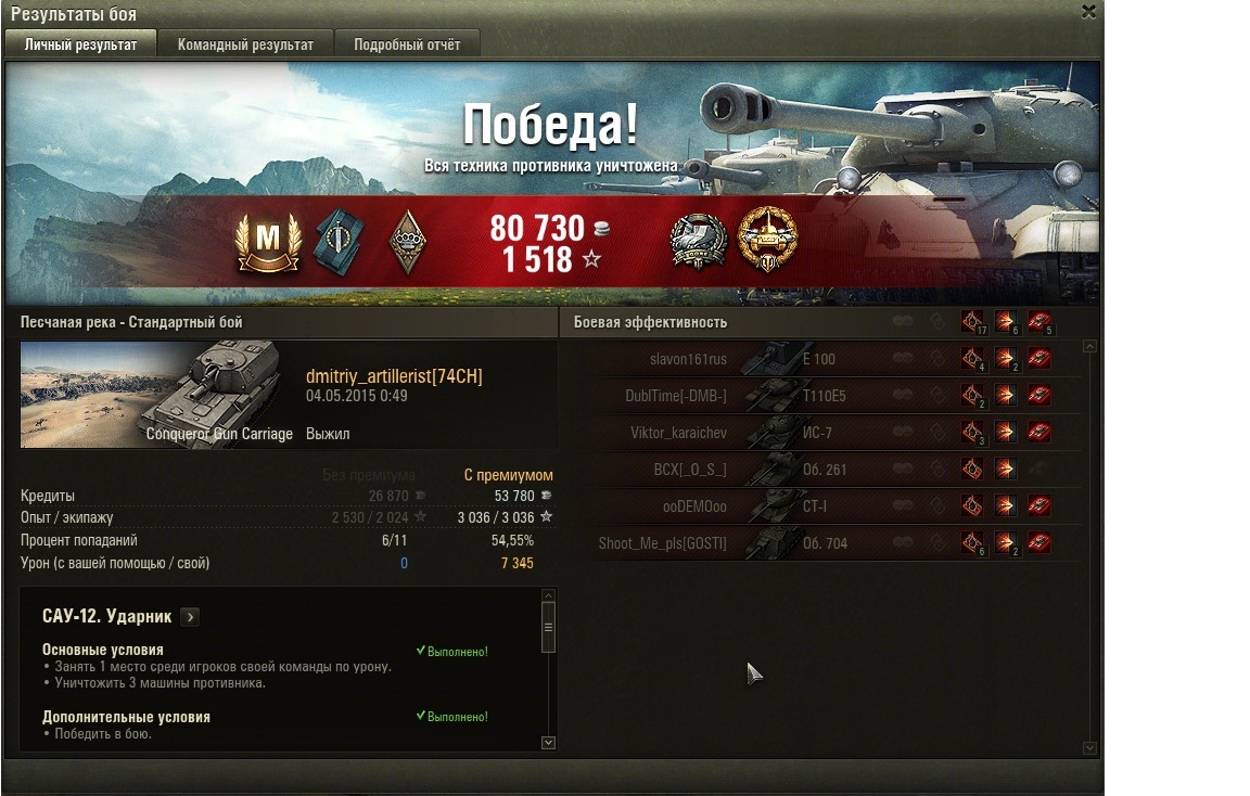Всем привет ! Парни кто сделал ПТ-8.Крупный калибр (Нанести не менее чем в 4 раза больше урона, чем прочность собственной машинны), на чем лучше выполнить ? Осталась только эта задача и пора выкатывать Т110Е3 для ПТ-15