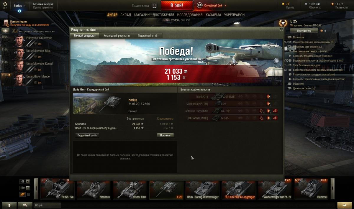 Не играл в эту н-ое время. Сыграл сегодня восемь боёв,- половину выиграл, два боя на Е25, остальные на пятёрках прем. Обратил внимание на кредиты. Они у меня до этого в минусе были?