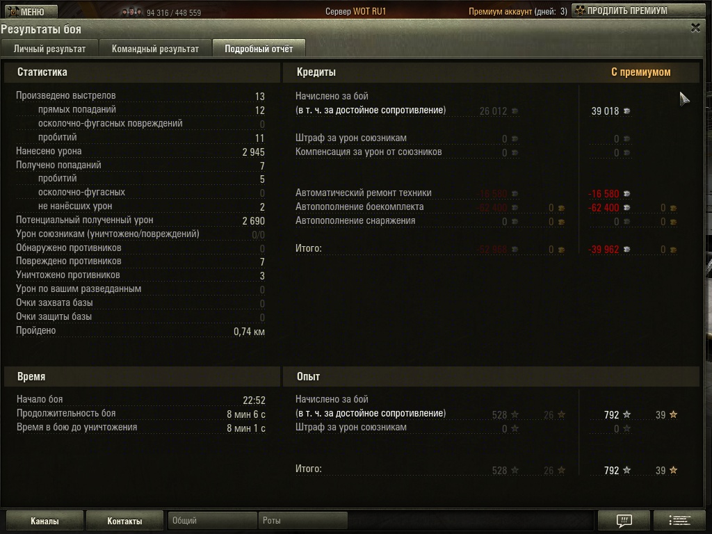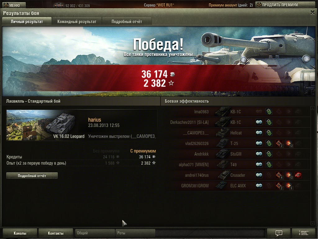 Проиграл, получил медаль, получил достойное сопротивление, а опыта как при победе (х1.5) не получил! P.S. Список изменений версии 8.8. При получении достижения «Герой битвы», эпического достижения или взводной награды игроки проигравшей команды будут получать столько же опыта и кредитов, сколько и игроки команды-победителя.
