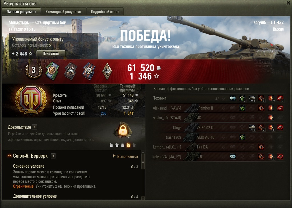 Обнаружил забавный БАГ. Стоит мод на озвучивание достижений в бою (ну там, типа, ВОООИН! и прочее). Играю на ЛТ, в конце боя убиваю две арты практически одновременно (с разницей в одну десятую секунды), одну убиваю тараном, а вторую выстрелом, внизу экрана появляется надпись медали БОМБАРДИР (убить двоих одним выстрелом). В итогах боя медали этой нет. http://wotreplays.ru/site/12422121#parizh-seryi85-lt-432 9:06 до конца боя - появление надписи, 9:17 убийство двух арт. http://cdn-frm-eu.wargaming.net/4.5/style_extra/mime_types/txt.gif python.log 546,51К python.log