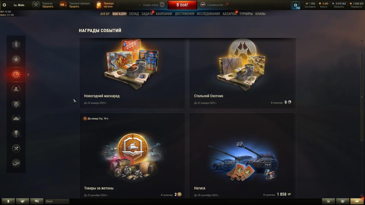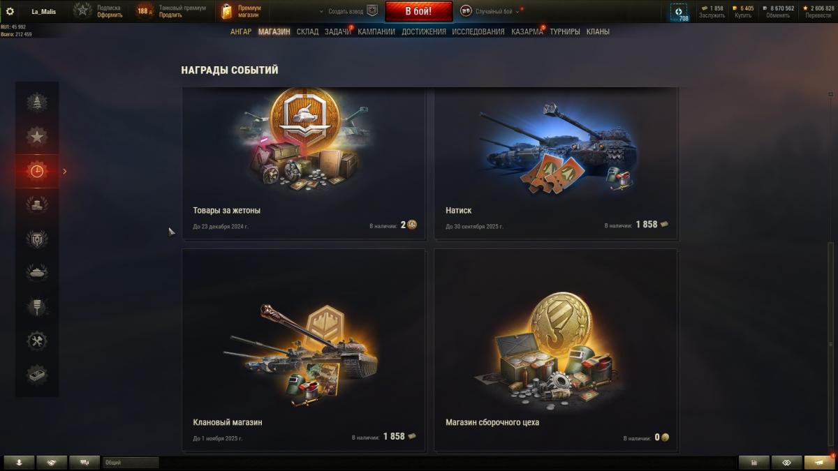 Нет, раньше сразу окно всплывало и в магазине вкладка была где жетоны тратить, а сейчас нет такого. https://forum-mt-prod.lesta.ru/monthly_12_2024/post-674450-0-81504600-1734164969_thumb.jpghttps://forum-mt-prod.lesta.ru/monthly_12_2024/post-674450-0-97795600-1734164989_thumb.jpghttps://forum-mt-prod.lesta.ru/monthly_12_2024/post-674450-0-34944100-1734165020_thumb.jpg. Появилась, после перезагрузки, закрывайте.