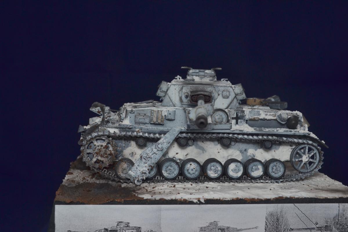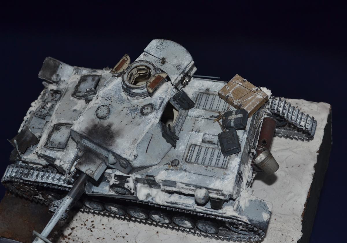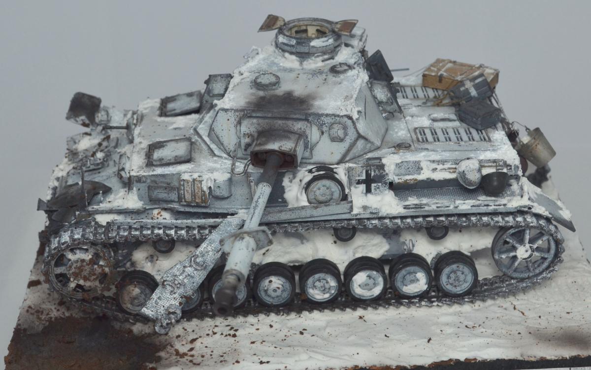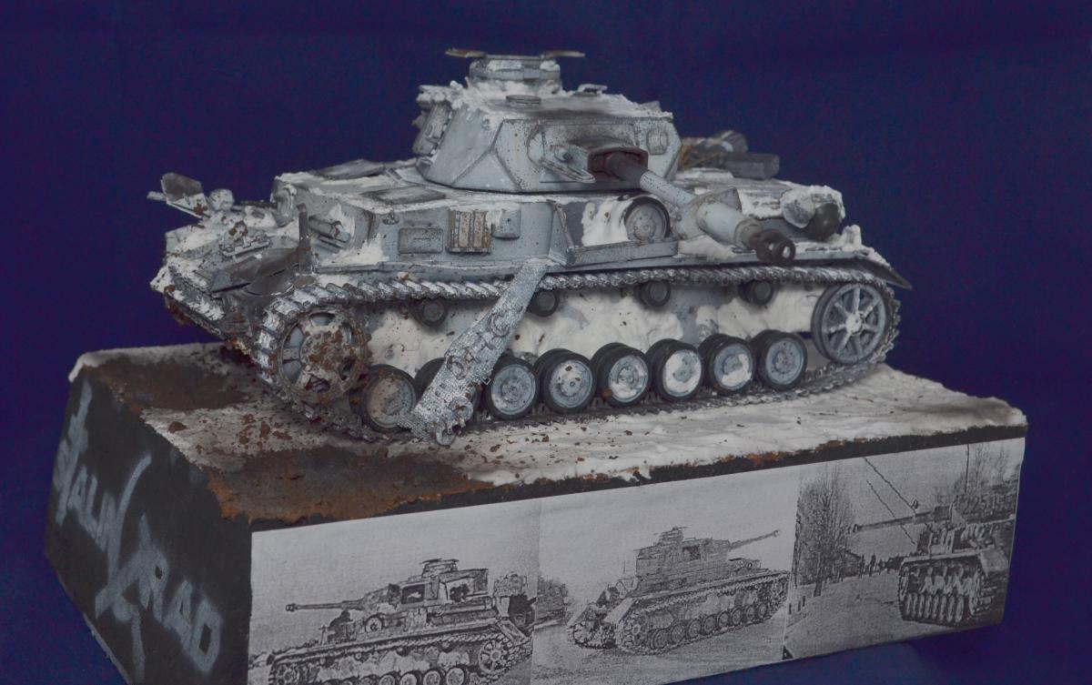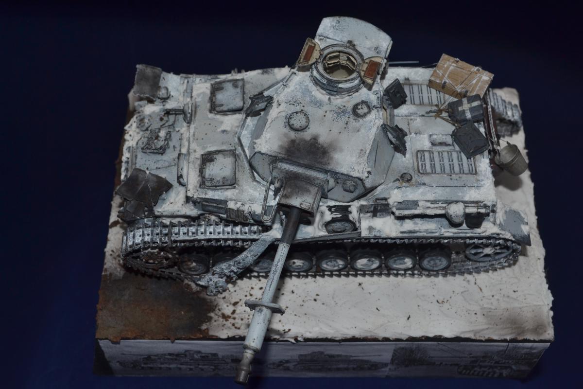 Добрый день, друзья! Давненько ничего не делал! Это потому что, у меня не было рабочего отдельного места. В НГ я себе сделал его и работа пошла. Представляю вашему внимаю Pz.Kpfw.IV Ausf.G Сталинградский фронт. Подставку и зимний камо делал впервые. Модель Драгон - 1/35, краски Тамия, химия АК, снег АК и Wilder. Пасты Wilder - земля. Повреждения и фляжки - самодел, люки корпуса открываются. Ведро -фототравление, ящик с замком - снарядный от Т34. За основу брал фото реальных машин с разных театров боевых действий. http://cdn-frm-eu.wargaming.net/wot/ru/uploads/monthly_03_2020/post-67450983-0-89372800-1583302604_thumb.jpghttp://cdn-frm-eu.wargaming.net/wot/ru/uploads/monthly_03_2020/post-67450983-0-27183700-1583302629_thumb.jpghttp://cdn-frm-eu.wargaming.net/wot/ru/uploads/monthly_03_2020/post-67450983-0-46152600-1583302644_thumb.jpghttp://cdn-frm-eu.wargaming.net/wot/ru/uploads/monthly_03_2020/post-67450983-0-15500400-1583302659_thumb.jpghttp://cdn-frm-eu.wargaming.net/wot/ru/uploads/monthly_03_2020/post-67450983-0-73676800-1583302675_thumb.jpghttp://cdn-frm-eu.wargaming.net/wot/ru/uploads/monthly_03_2020/post-67450983-0-99470000-1583302683_thumb.jpghttp://cdn-frm-eu.wargaming.net/wot/ru/uploads/monthly_03_2020/post-67450983-0-63366300-1583302743_thumb.jpghttp://cdn-frm-eu.wargaming.net/wot/ru/uploads/monthly_03_2020/post-67450983-0-73963000-1583302751_thumb.jpghttp://cdn-frm-eu.wargaming.net/wot/ru/uploads/monthly_03_2020/post-67450983-0-42730600-1583302767_thumb.jpghttp://cdn-frm-eu.wargaming.net/wot/ru/uploads/monthly_03_2020/post-67450983-0-27560600-1583302774_thumb.jpg