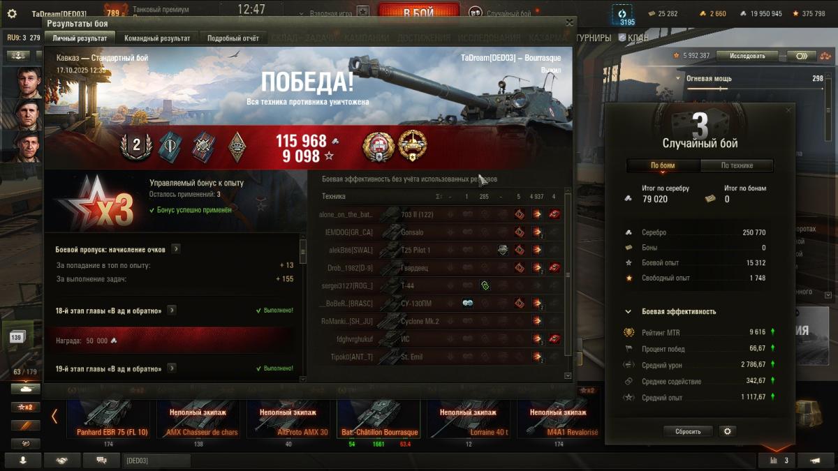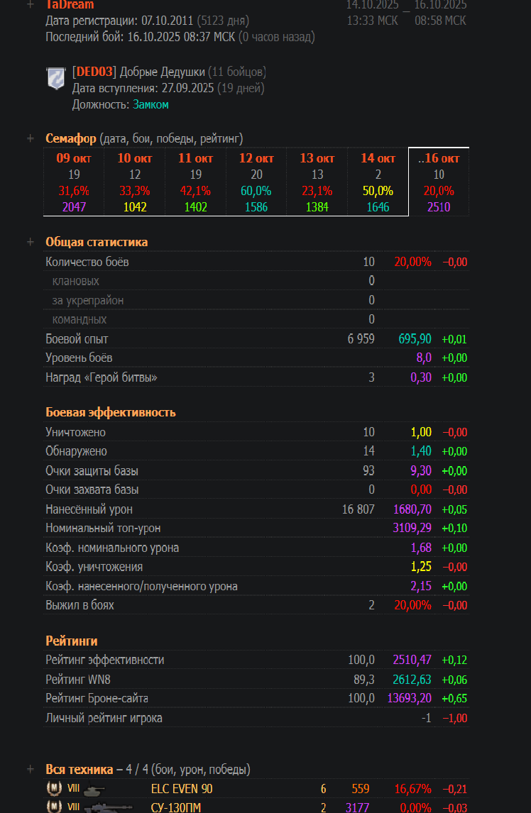 Чтобы быть более объективным, сегодня случился бой 15-2. И даже не знаю, что лучше- настрелять много и продуть, или турбач и ничего не успел сделать) Часто, слишком часто вижу ботов, игрокам похх, не боятся катать роботов. Но и напротив если, весело их раскатывать. Хотя и не так интересно, как раскатать какого- нить скиловичка. Формула 1-15 сегодня не сработала, началось утро с побед P.S. Впоследствии ПП выровнялся, но вектор эффективности остался. Такие катки мне по душе)