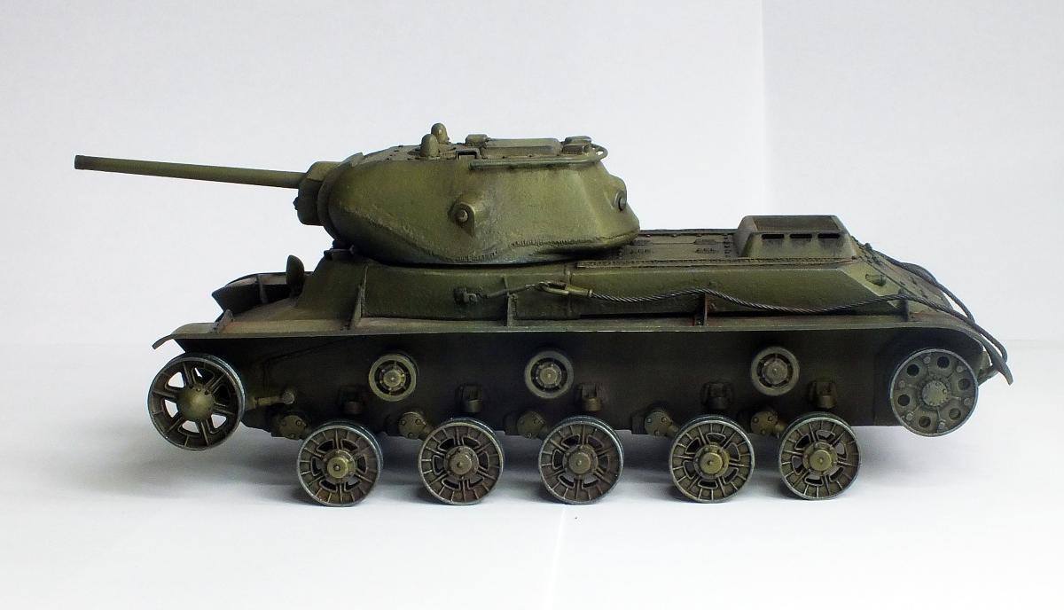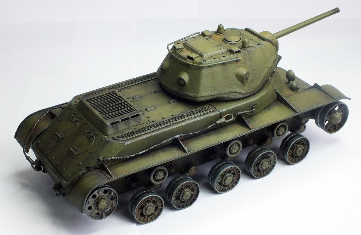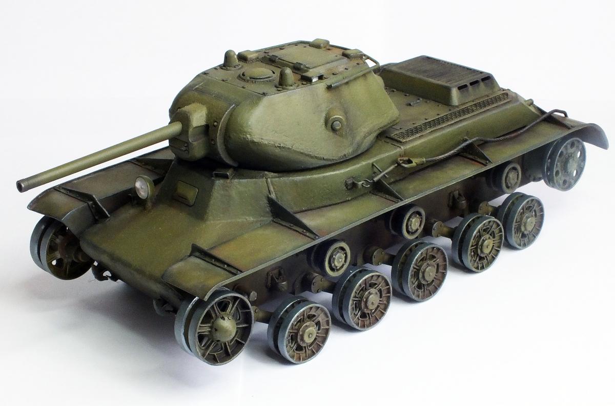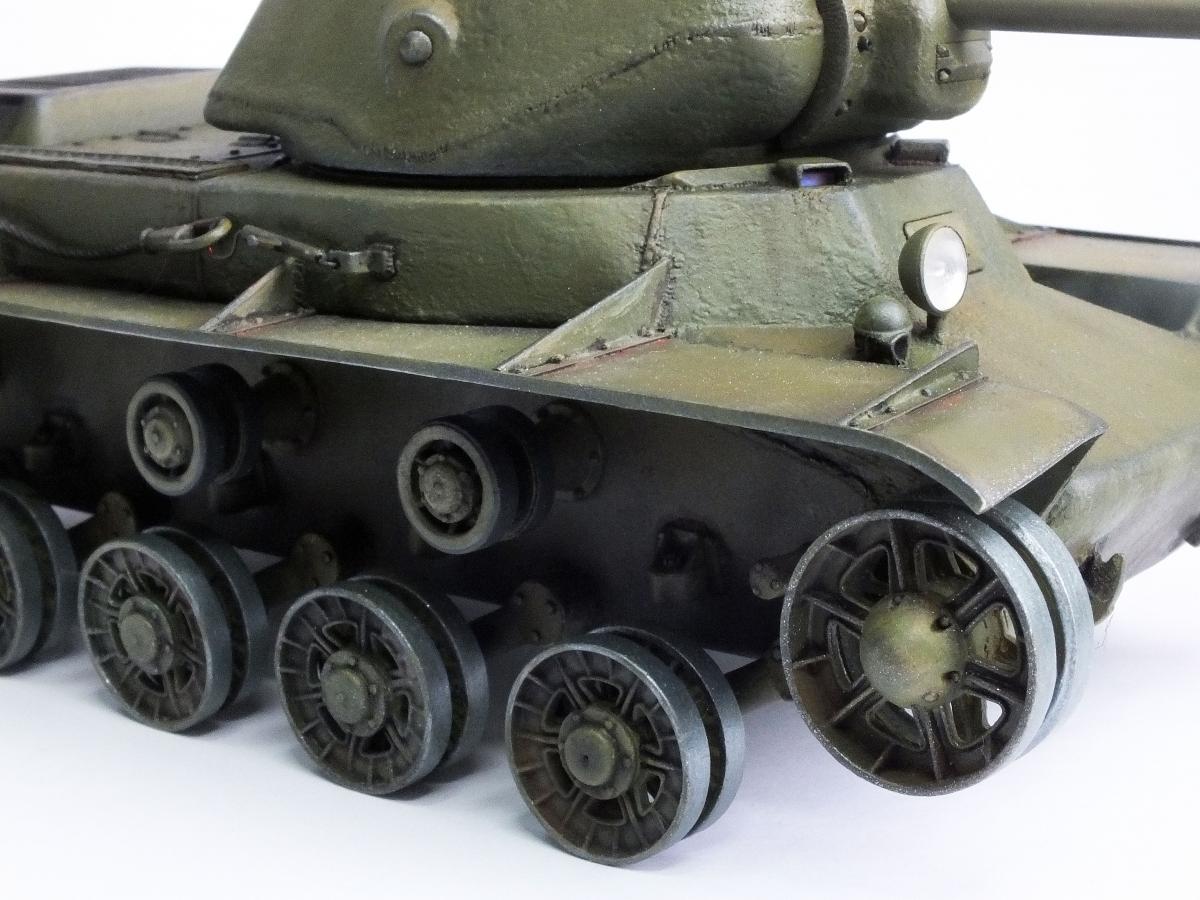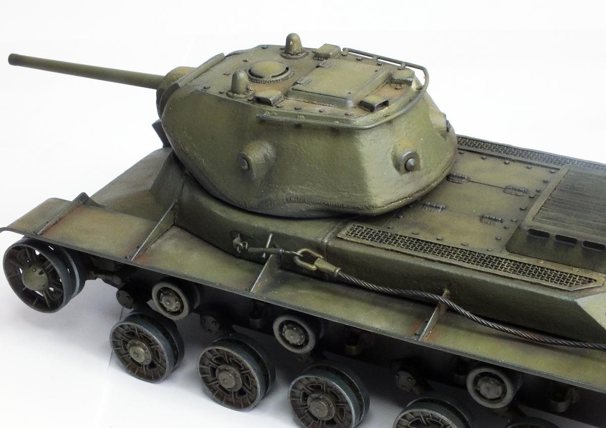 Еще про бронекожухи. На первых версиях КВ-2 с так называемой "большой" башней на орудие надевался цельный бронекожух, единой трубой. Но процесс получился слишком сложный и длительный. Поэтому на танках с "пониженной" башней, как у автора, бронекожух состоял из трех цилиндров, которые прижимались гайкой. Она хорошо видна на дуле орудия.В ней по кругу имелось четыре отверстия, в которые вставлялся рычаг- и слесарь радостно, с матерком, крутил гайку.
