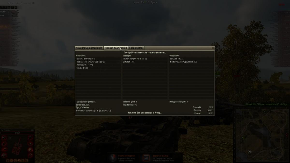 сау5 "Сбить гусеницу 2 машинам противника.Засчитываются цели, которые впоследствии были уничтожены другими игроками, пока она не восстановила гусеницы или самоуничтожилась." сбил гусельки, обоих добили в течении секунды, но вот беда - одного скрысил кривой рачек из вражеской команды. Почему же не засчитало мне лбз? по факту то, это не я добил, а "другие игроки". http://wotreplays.ru/site/4941357?secret=be268efdcac22a57ec281e77934abef0 12:13