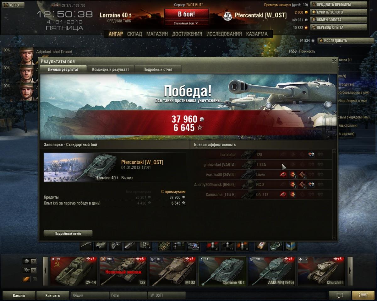 Обычно не слежу за такими вещами, ибо пофиг...Все равно галочку под принятием пользовательского соглашения поставил)))) и играть не брошу... Но тут уж сильно в глаза бросилось... Реплей прилагается. На пятой минуте боя, время с начала боя 4 - 4.20, по обратному отсчету 11 - 10.40 Я играя на лоре произвел 2 выстрела голдой по жо... по корме и борту 62го... Оба раза голос свыше молвил "Попадание"... В статистике послебоевой (см скриншот) не отобразилось ни урона, ни критов... Как бы урон-то может и не прошел, так как похоже второй выстрел мы с Исом 7ым вместе сделали... Но хоть гусянки то должны были пройти - по легенде разработчиков "Попадание" без урона = крит модуля.. Или там экраны у 62го?))))) В общем кто могёт это объяснить - милости просим. http://www.myreplays...54-50e668b31376