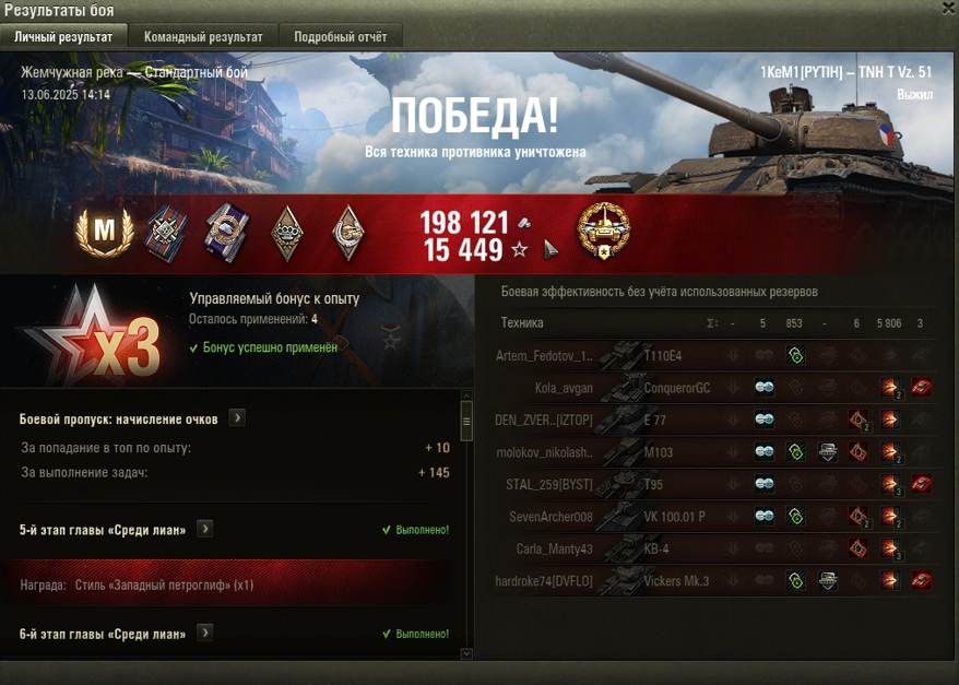 Не играл в игру 102 дня (последний бой был 12.07.25). Промокод за возвращение работает, если не играл в игру +75 дней и имеет на аккаунте +100 боев (при этом надо сыграть 1 бой выше 4 уровня). Зашел в игру, сыграл 1 бой на 10 уровне, и на складе не появляется "Поставки с тыла". Это ошибка серверов или код работает не до 4 ноября, а сутки? Изменено: Все работает, просто задача на получение выдается довольно долго! Даже если сыграли бой - не страшно, если до этого не играли 75+ дней, задача выдается!