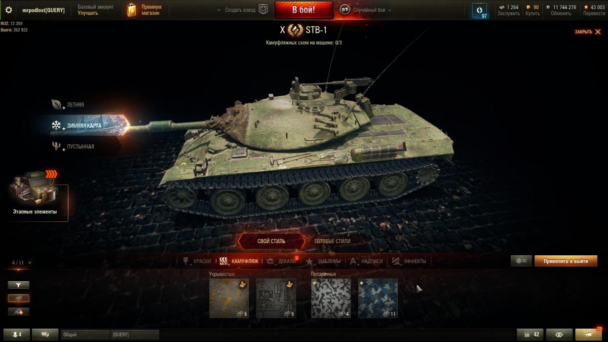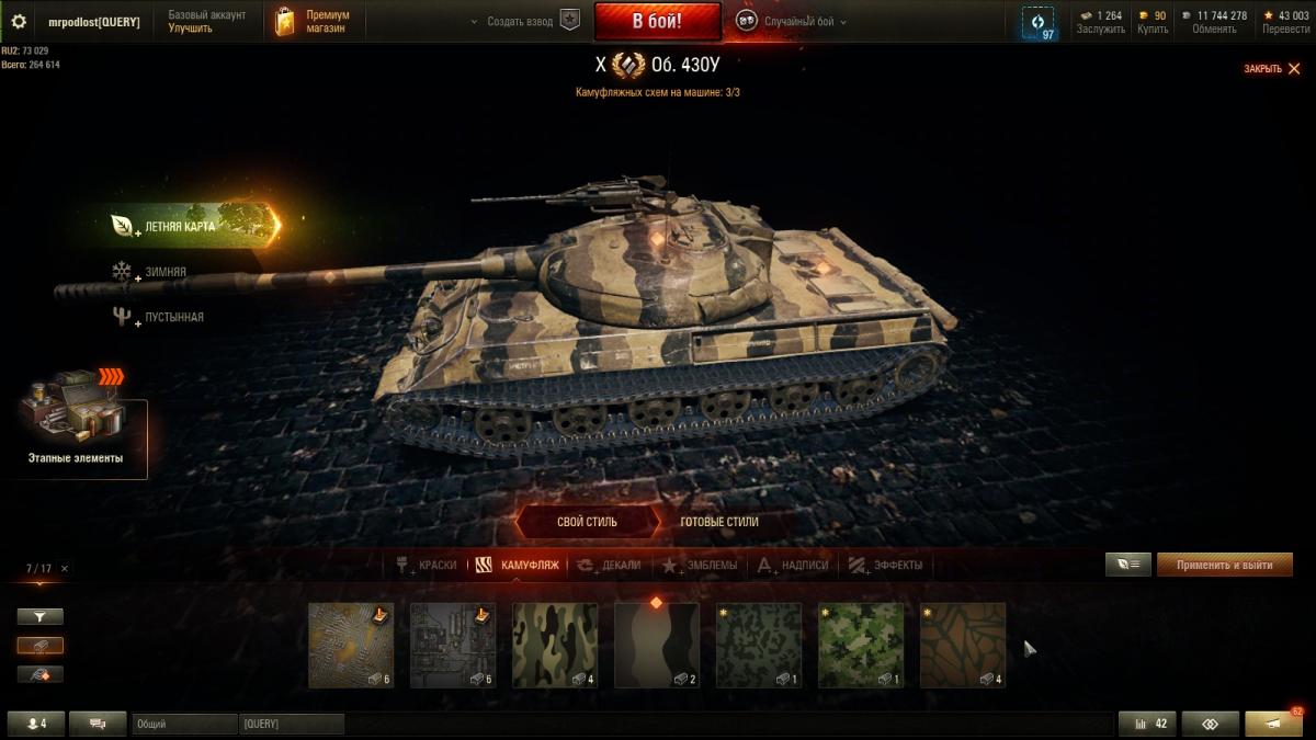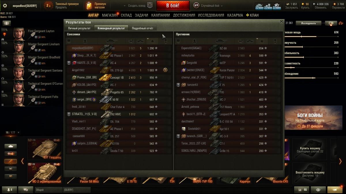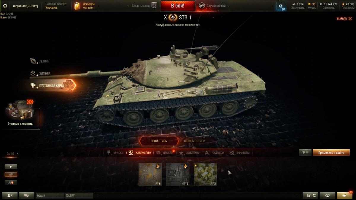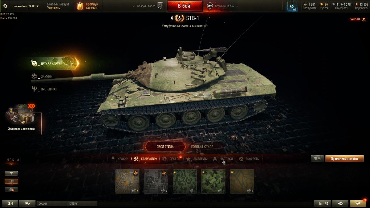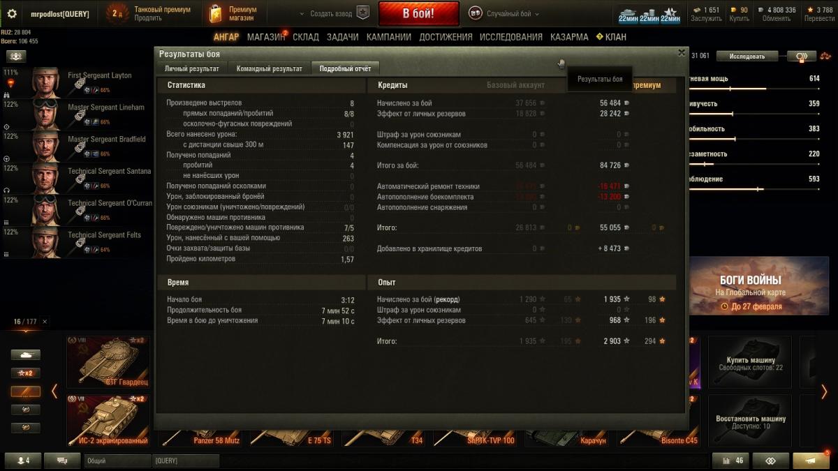 Я далеко не статисЬт. Всё от настроения зависит. Основная техника - премы 8 ур. ИС-2Э Об 274а Гвардеец Т-34 Shptk ИС-6Ч КВ-5 Panzer Muts 07RH 122 TM Bisonte Chrysler Strv K Есть еще несколько премов, но ЭТИ основные что хочу сказать то, ДА с 10-ми ой как не нравится встречаться...просто ппц как не нравится ))