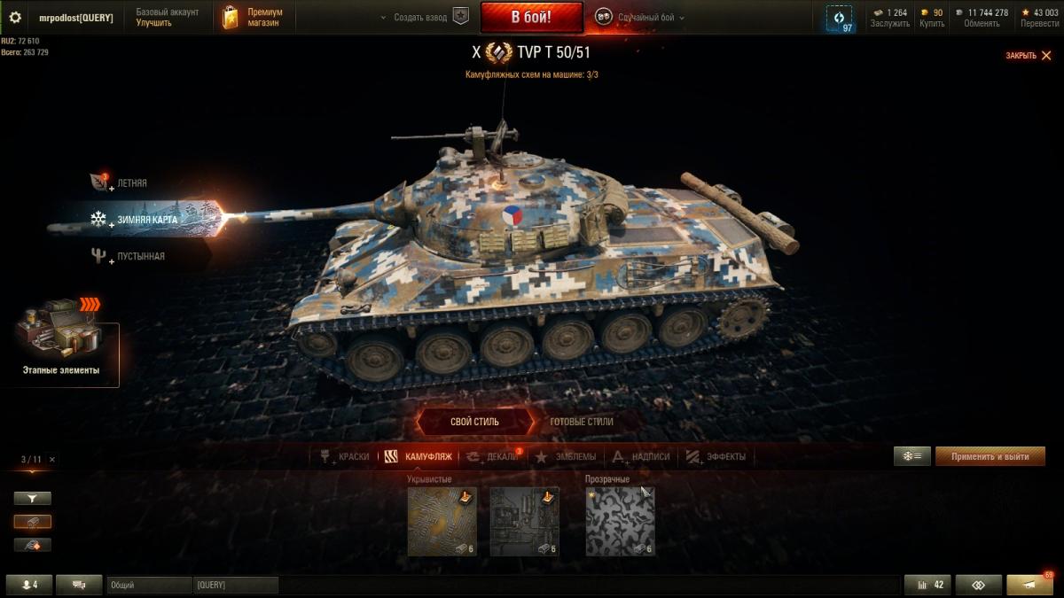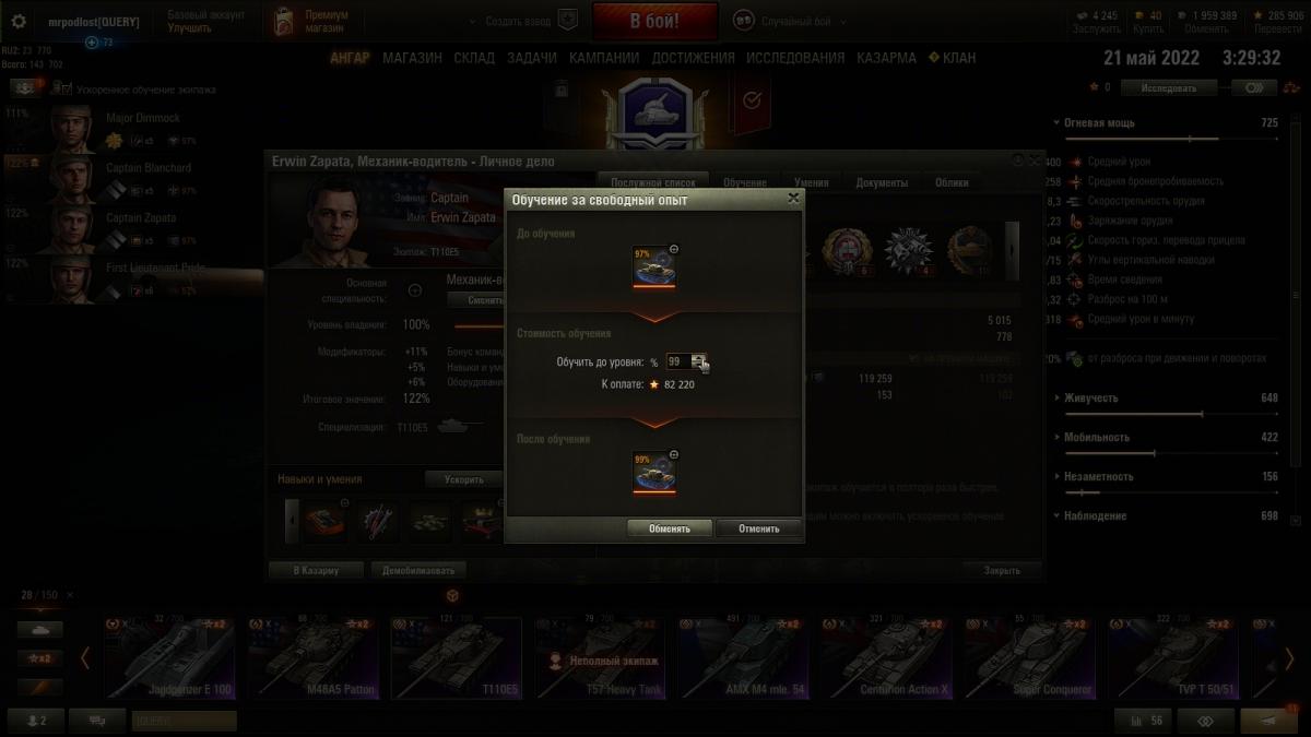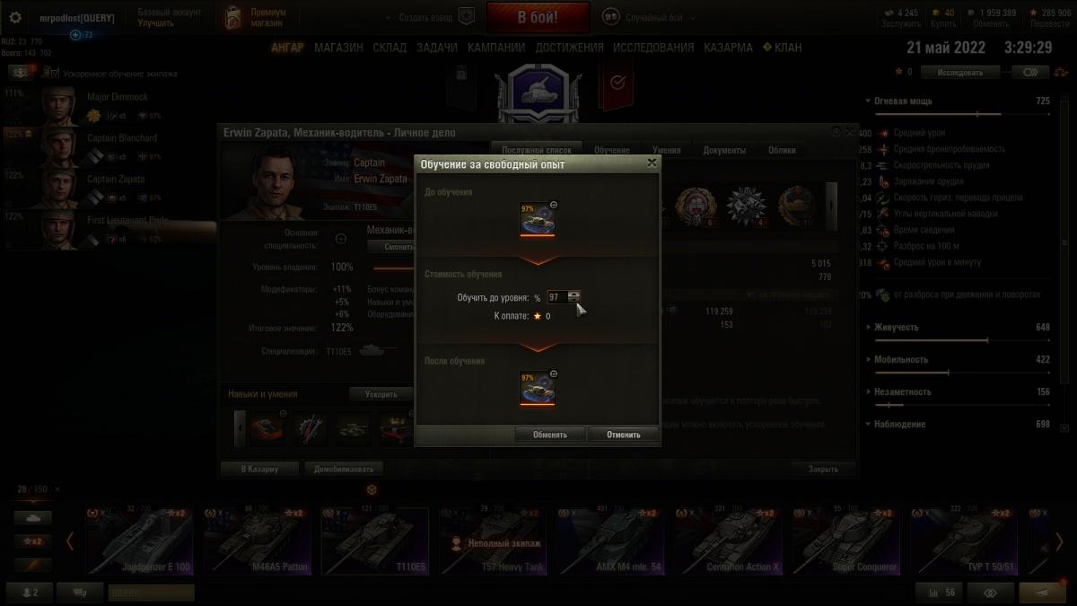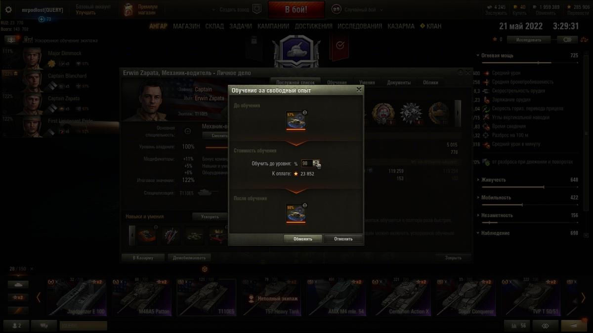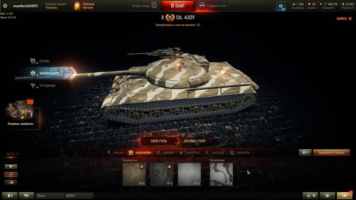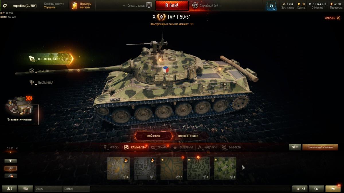 Я далеко не статисЬт. Всё от настроения зависит. Основная техника - премы 8 ур. ИС-2Э Об 274а Гвардеец Т-34 Shptk ИС-6Ч КВ-5 Panzer Muts 07RH 122 TM Bisonte Chrysler Strv K Есть еще несколько премов, но ЭТИ основные что хочу сказать то, ДА с 10-ми ой как не нравится встречаться...просто ппц как не нравится ))