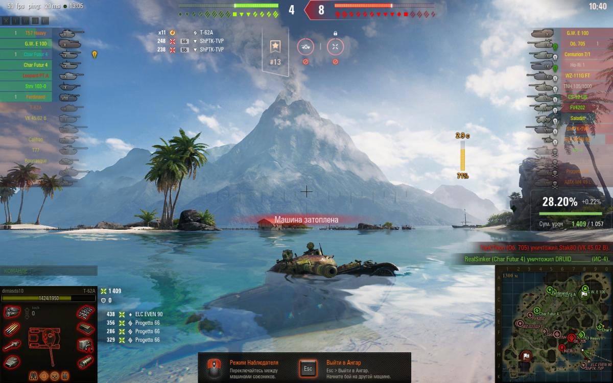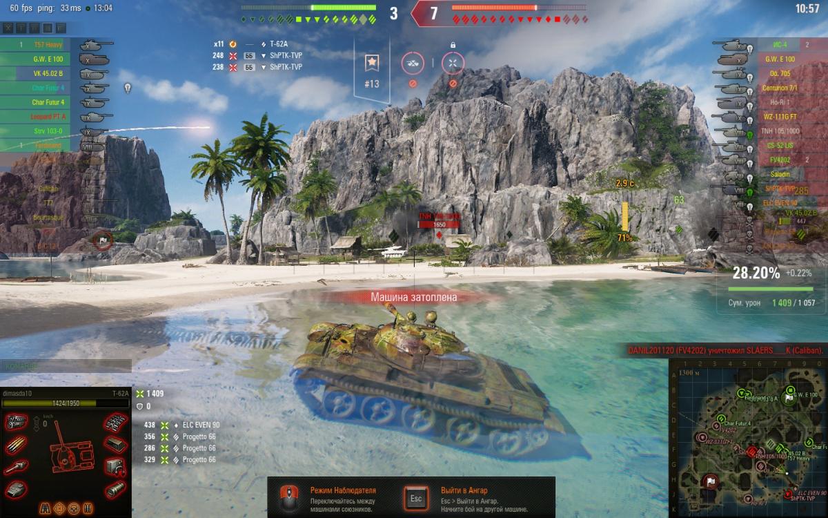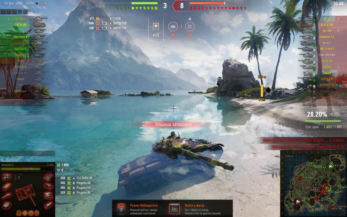 как возможно так утонуть? сможете исправить? и ещё ну не 10 же секунд в воде тонет танк, тем более 62!!! советую изучить танки в этой игре, и заменить каждому своё время, например т55 мог воевать и при ядерной войне, настолько там всё герметично. И к стати, дизельный двигатель в воде не так быстро глохнет, это не бензиновый, тут система другая.