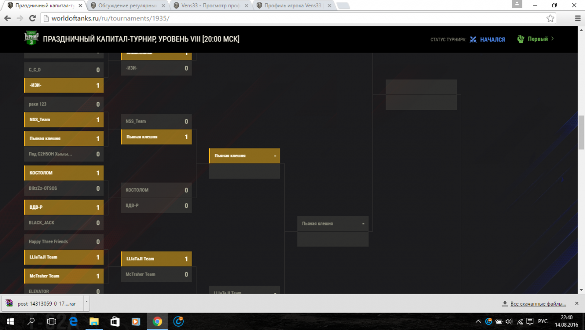 а те команды которые ждут соперника на 00.32 15.08.16 тоже могут ждать или они уже проиграли в турнире? а текто должны были вчера играть 1/2048 в 22-45 13.08.16 тоже жтать должны ? дак уже все сроки прошли указанный на оф сайте турнира