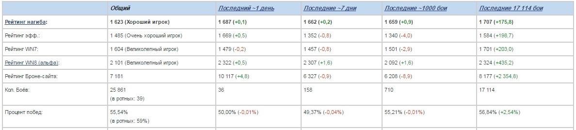 Смотрю "протанки", но Юша не всегда объективен. Для полноты картины надо учитывать мнение энного кол-ва людей. Моя статистика еще недавно 55,6, сейчас 55,54% и это при 26к боев. Дальше посчитать не сложно - очевидный рост в минус. Как у некоторых людей высказавших свое мнение, она неуклонно катится вниз ЗЫ: Дамаг остается прежним, влияние на исход максимальное которое я могу дать команде.