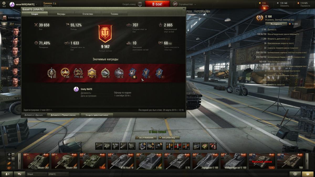 http://ru.wargaming.net/clans/media/clans/emblems/cl_798/60798/emblem_64x64.png [uNATE] Unity NATE Здравствуйте танкисты! Заявки на вступление оставляйте на нашем САЙТЕ. Клану [uNATE] Unity NATE срочно нужны бойцы! Наш ШТАБ. О Клане: [uNATE] Unity NATE; Командующий: _K_L_a_S_s_i_K; Количество игроков: 79; Иванерр: сила 208.0, рейтинг 165;. В среднем по клану: 55.1% побед , БС 8031, РЭ 1600, WN8 2045 Требования для вступления: http://unate.wot.pw/upload/b4/ff/b4ffbb9023b72493ae9e6bf52b46ff79.png [uNATE] Unity NATE 1. Рейтинг Броне - сайта от 8000 2. Прайм - Тайм с 16:00 до 20:00 мск 3. Общий процент побед 57+ | РЭ 1600+ 4. В ангаре должны быть как минимум 10 топов 5. Обязательно наличие голосовой программы TeamSpeak 3 ╘» Статистика клана по: КТТС | Ivanerr | Броне - сайту