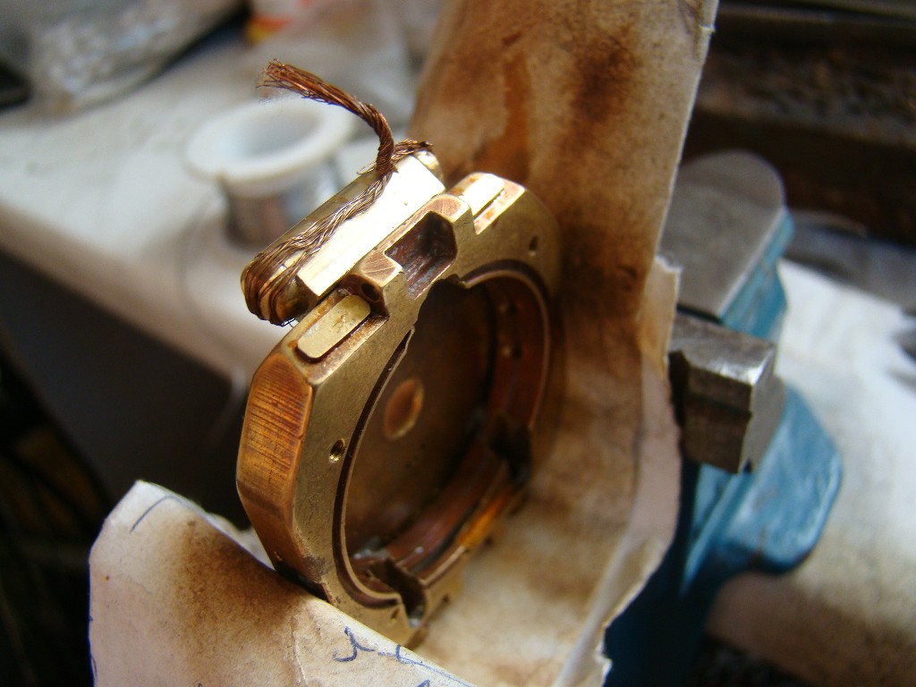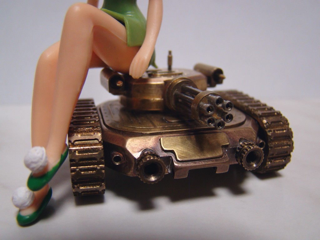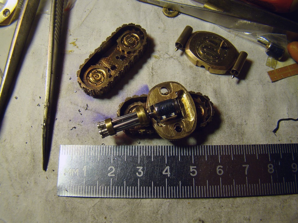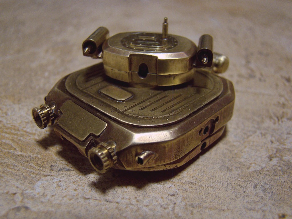 Всем привет. Это не совсем модель, скорее - просто миниатюра из металла. Предварительные размеры - 50х45х25мм, реально получившиеся - 47х46х23 мм Используются корпуса от старых наручных часов и мелкие латунные ништяки. Крепление деталей - пайкой и винтами. http://cdn-frm-eu.wargaming.net/wot/ru/uploads/monthly_07_2016/post-70420413-0-39873200-1469663573_thumb.jpg http://cdn-frm-eu.wargaming.net/wot/ru/uploads/monthly_07_2016/post-70420413-0-52733900-1469663576_thumb.jpg http://cdn-frm-eu.wargaming.net/wot/ru/uploads/monthly_07_2016/post-70420413-0-83819600-1469663574_thumb.jpg Гусли точились из латунного листа в два захода : сначала рельеф, потом прорези между траками. Во время второго этапа поломался кончик фрезы, поэтому автоматом получилась имитация грязи http://cdn-frm-eu.wargaming.net/wot/ru/uploads/monthly_07_2016/post-70420413-0-50692000-1469664322_thumb.jpg http://cdn-frm-eu.wargaming.net/wot/ru/uploads/monthly_07_2016/post-70420413-0-49215100-1469664409_thumb.jpg http://cdn-frm-eu.wargaming.net/wot/ru/uploads/monthly_07_2016/post-70420413-0-00945300-1469664324_thumb.jpg Башня будет поворотная, а для того, чтобы в нее можно было подать питание, пришлось городить такую конструкцию : http://cdn-frm-eu.wargaming.net/wot/ru/uploads/monthly_07_2016/post-70420413-0-32393200-1469664777_thumb.jpg http://cdn-frm-eu.wargaming.net/wot/ru/uploads/monthly_07_2016/post-70420413-0-10920500-1469664776_thumb.jpg http://cdn-frm-eu.wargaming.net/wot/ru/uploads/monthly_07_2016/post-70420413-0-75056500-1469664774_thumb.jpg И предварительный результат : http://cdn-frm-eu.wargaming.net/wot/ru/uploads/monthly_07_2016/post-70420413-0-76895200-1469665251_thumb.jpg http://cdn-frm-eu.wargaming.net/wot/ru/uploads/monthly_07_2016/post-70420413-0-25306500-1469665253_thumb.jpg
