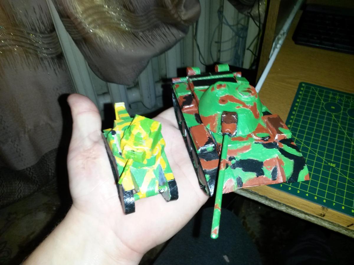 Хочу продемонстрировать Вам чего я достиг за два месяца увлечением этим замечательным хобби. Моя первая работа,с чего все начиналось.(Т-54) http://cdn-frm-eu.wargaming.net/wot/ru/uploads/monthly_11_2015/post-7052322-0-05586600-1446689666_thumb.jpghttp://cdn-frm-eu.wargaming.net/wot/ru/uploads/monthly_11_2015/post-7052322-0-04017800-1446689695_thumb.jpghttp://cdn-frm-eu.wargaming.net/wot/ru/uploads/monthly_11_2015/post-7052322-0-66925300-1446689709_thumb.jpg Дальше были вот такие недоразумения (МС-1,СУ-26) http://cdn-frm-eu.wargaming.net/wot/ru/uploads/monthly_11_2015/post-7052322-0-87061200-1446689831_thumb.jpghttp://cdn-frm-eu.wargaming.net/wot/ru/uploads/monthly_11_2015/post-7052322-0-11547200-1446689853_thumb.jpghttp://cdn-frm-eu.wargaming.net/wot/ru/uploads/monthly_11_2015/post-7052322-0-15420200-1446689904_thumb.jpghttp://cdn-frm-eu.wargaming.net/wot/ru/uploads/monthly_11_2015/post-7052322-0-04393000-1446689926_thumb.jpg После я решил смастерить что-то подетальней взялся за Rudy http://cdn-frm-eu.wargaming.net/wot/ru/uploads/monthly_11_2015/post-7052322-0-97365700-1446689989_thumb.jpghttp://cdn-frm-eu.wargaming.net/wot/ru/uploads/monthly_11_2015/post-7052322-0-18131100-1446690011_thumb.jpghttp://cdn-frm-eu.wargaming.net/wot/ru/uploads/monthly_11_2015/post-7052322-0-64053400-1446690034_thumb.jpg И буквально сегодня закончил M4A3E8 Sherman.(не знаю как Вам а мне кажется прогресс на лицо) http://cdn-frm-eu.wargaming.net/wot/ru/uploads/monthly_11_2015/post-7052322-0-64637600-1446690191_thumb.jpghttp://cdn-frm-eu.wargaming.net/wot/ru/uploads/monthly_11_2015/post-7052322-0-98654600-1446690213_thumb.jpghttp://cdn-frm-eu.wargaming.net/wot/ru/uploads/monthly_11_2015/post-7052322-0-07401000-1446690236_thumb.jpghttp://cdn-frm-eu.wargaming.net/wot/ru/uploads/monthly_11_2015/post-7052322-0-95886300-1446690263_thumb.jpghttp://cdn-frm-eu.wargaming.net/wot/ru/uploads/monthly_11_2015/post-7052322-0-56752900-1446690307_thumb.jpghttp://cdn-frm-eu.wargaming.net/wot/ru/uploads/monthly_11_2015/post-7052322-0-32703300-1446690327_thumb.jpg И под конец моя незначительная коллекция в сборе http://cdn-frm-eu.wargaming.net/wot/ru/uploads/monthly_11_2015/post-7052322-0-27192600-1446690378_thumb.jpg На этом все,уверен,что еще много есть над чем работать. С удовольствие выслушаю критику и советы с Вашей стороны. Может посоветуете над каким танком мне поработать в след раз. а может бросить это дело.