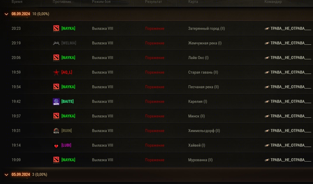 Здравствуйте.На 8 м уровне мы укрепрайоне достигли высокого Эло рейтинга (было более 1600). В конце августа - начале сентября в клан зашли недобросовестные люди, которые катали подставные бои и специально сливали эло рейтинг нашего клана на 8м уровне, для того чтобы бустить эло рейтинг других кланов. Данные действия производились начиная с 24 августа 2024 года под аккаунтами REV666DEAD, Lelikkum, Japan_Maniac, TPABA__HE_OTPABA____.Просьба восстановить эло рейтинг нашего клана по состоянию до 24 августа 2024 года, а к кланам, которых бустили данные игроки - применить наказание. А так же принять меры к соответствующим аккаунтам.Все бои сливались со счетом 0:7. По сообщениям игроков других кланов, против кого периодически попадались такие деяния - команда от нашего клана, которую собирали вышеназванные игроки, стояла на респауне и бездействовала. На скриншоте прикреплен один из таких дней, когда происходили подставные бои и происходил буст эло рейтинга клана NAYKA из 10-ти боев 5 боев против данного клана. Спасибо за понимание.