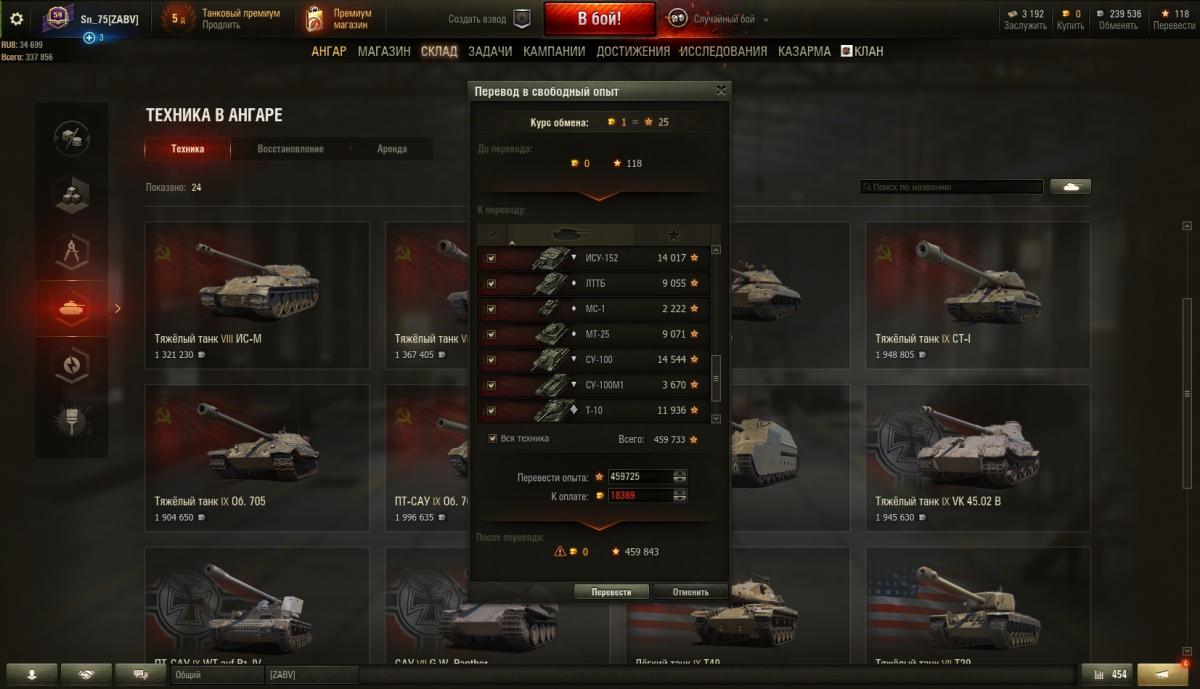Проблема , у меня была совко арта су14-1 на которой было что то около 30 к опыта для прокачки топ орудия. Однако топ пушку я качать не стал вместо этого чертежами открыл след машину в ветке су-14-2 а эту продал. Чтобы не пропадать опыту решил перевести его в свободный , открываем окно перевода , а там нет этой машины в списке . Это баг или фича , или я что то не понимаю ?