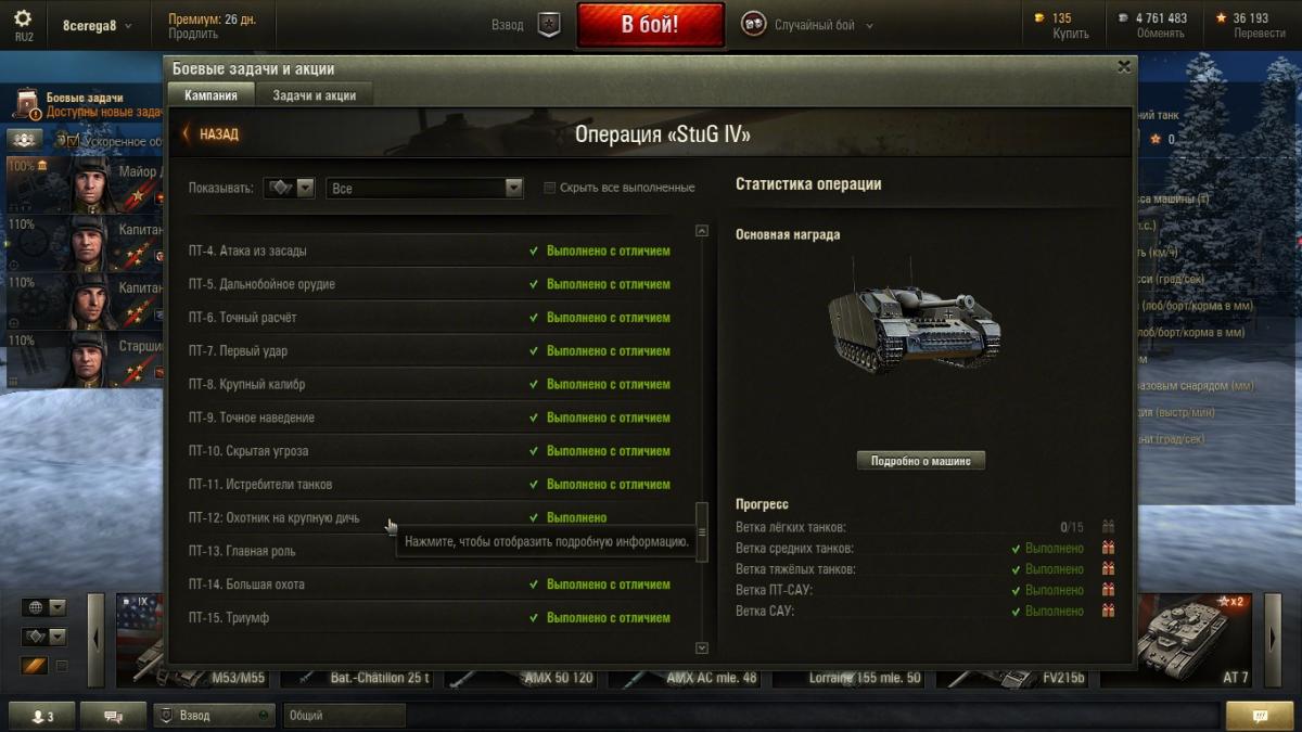 Цепочка боевых задач для тяжелых танков